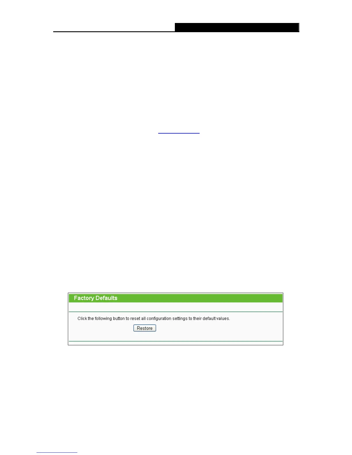 configurations of the router to factory defaults on the following screen