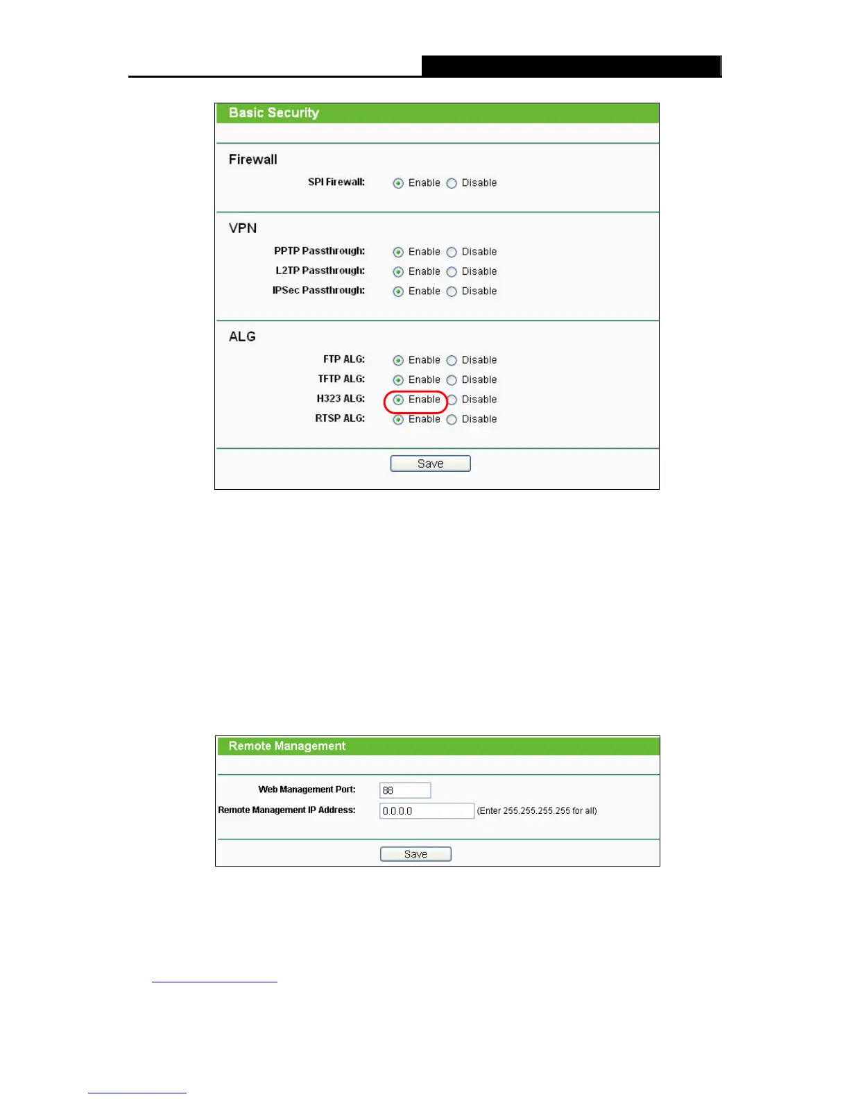 2) To change the WEB management port number: Log in to the router, click the “Security”
