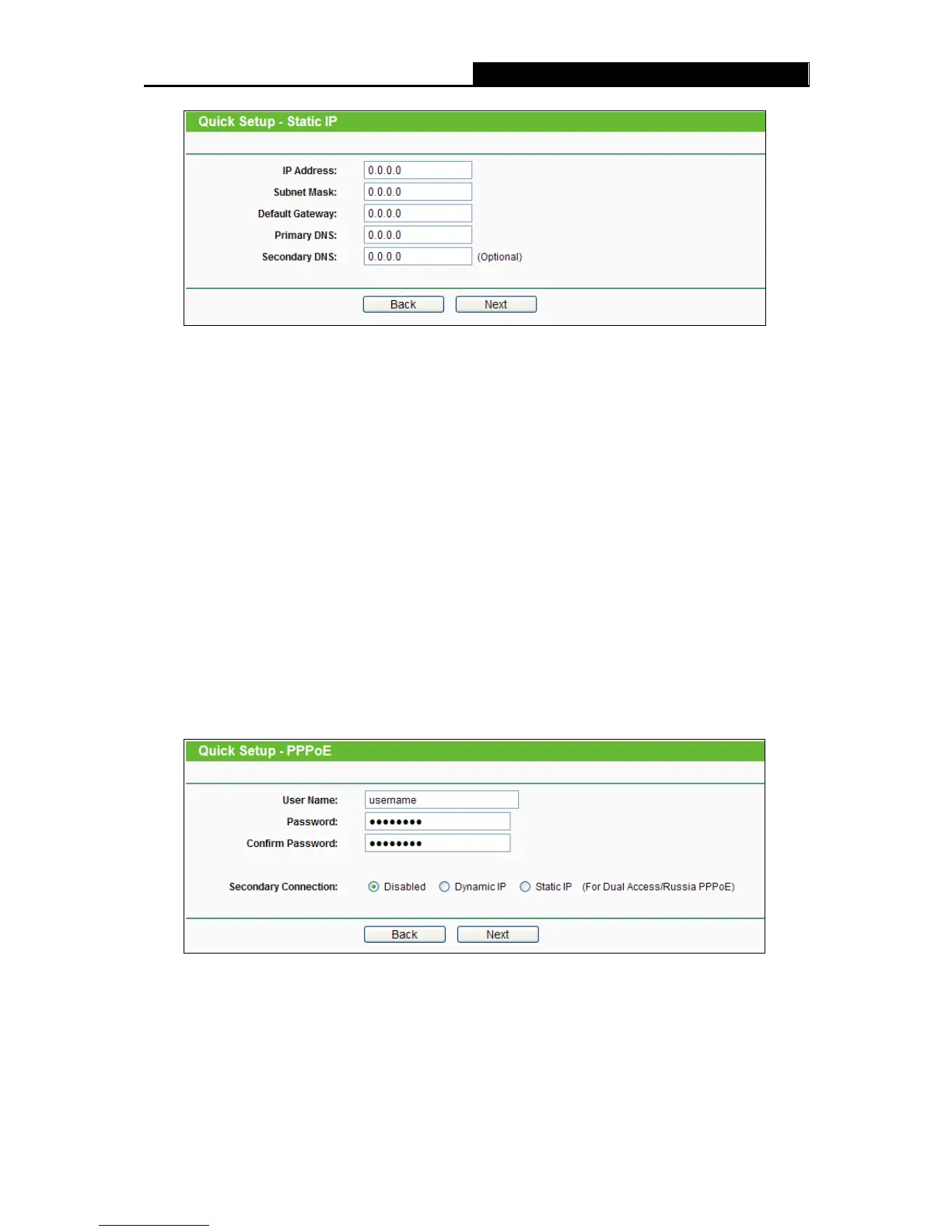 Figure 3-7 Quick Setup - Static IP