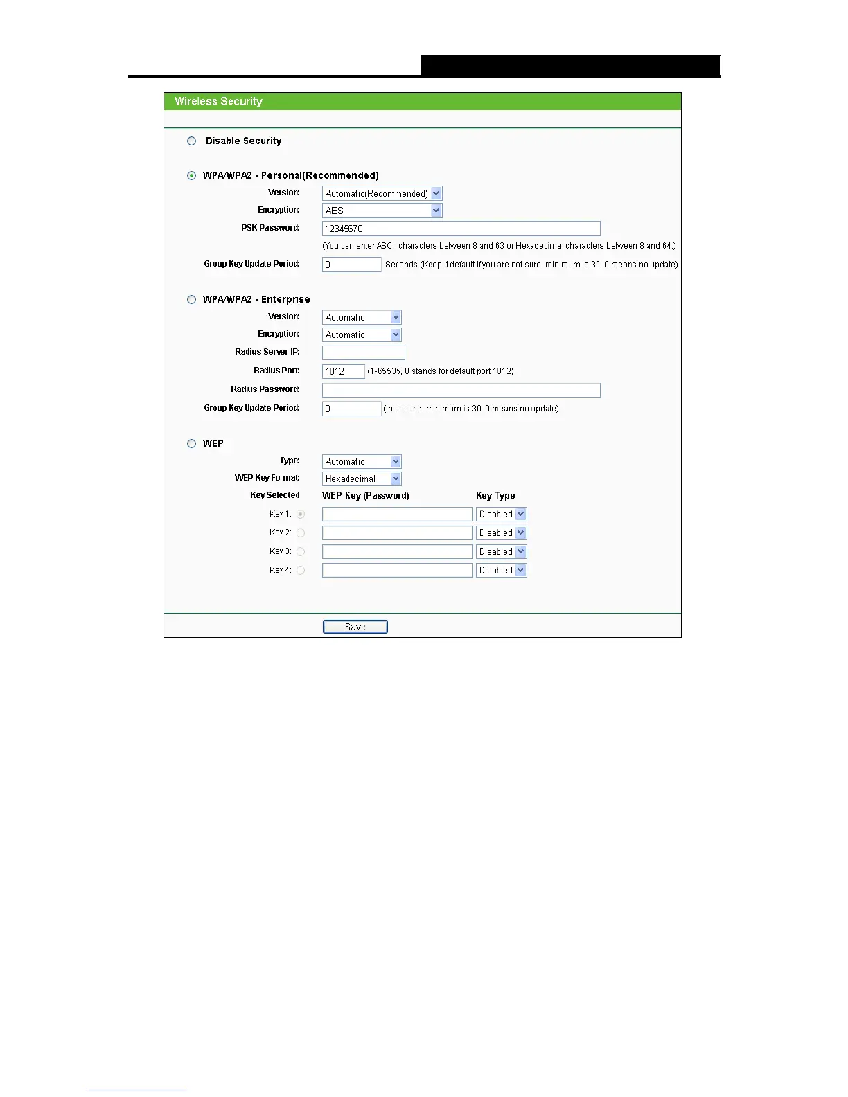 Disable Security - If you do not want to use wireless security, check this radio button. But it’s