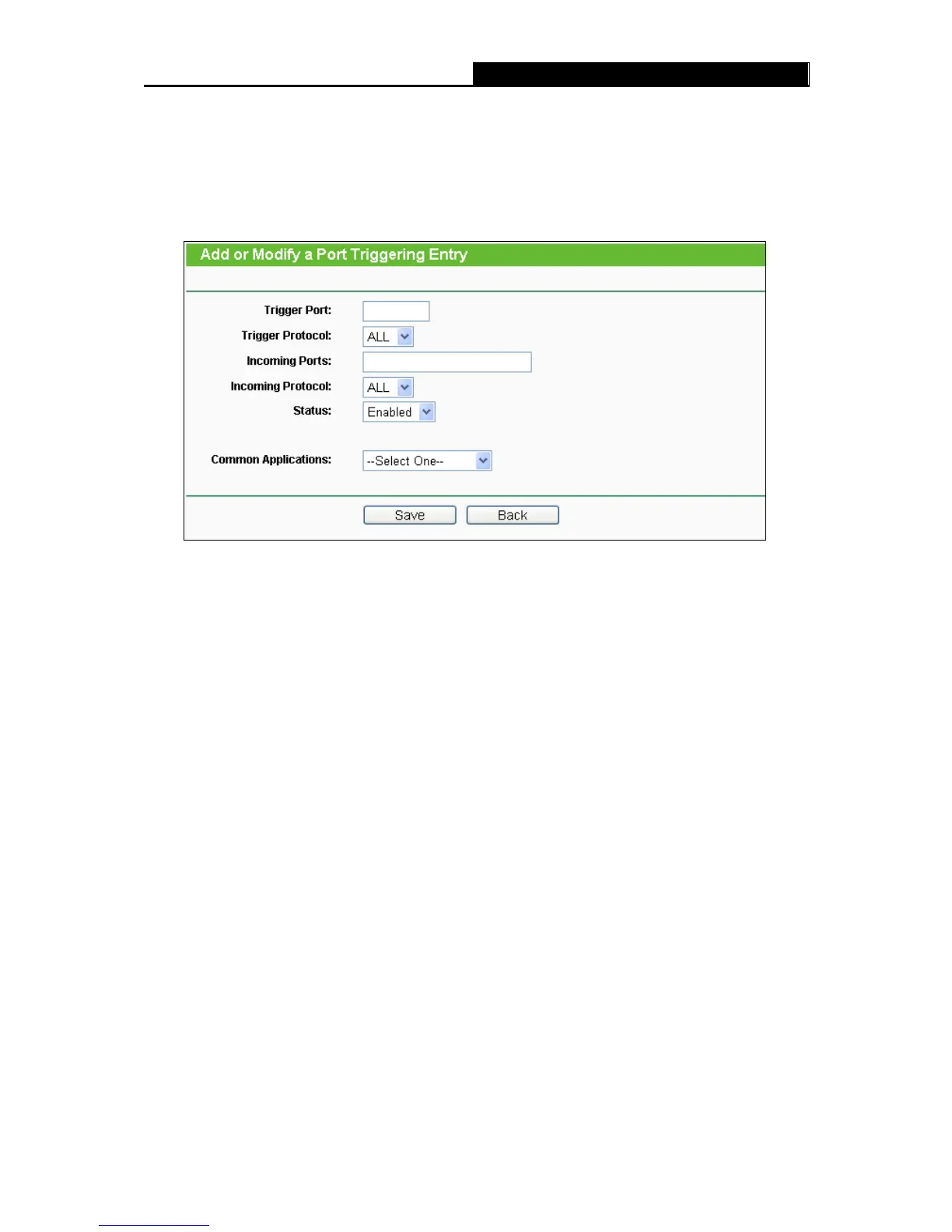 Status - The status of this entry, Enabled means the Port Triggering entry is enabled.