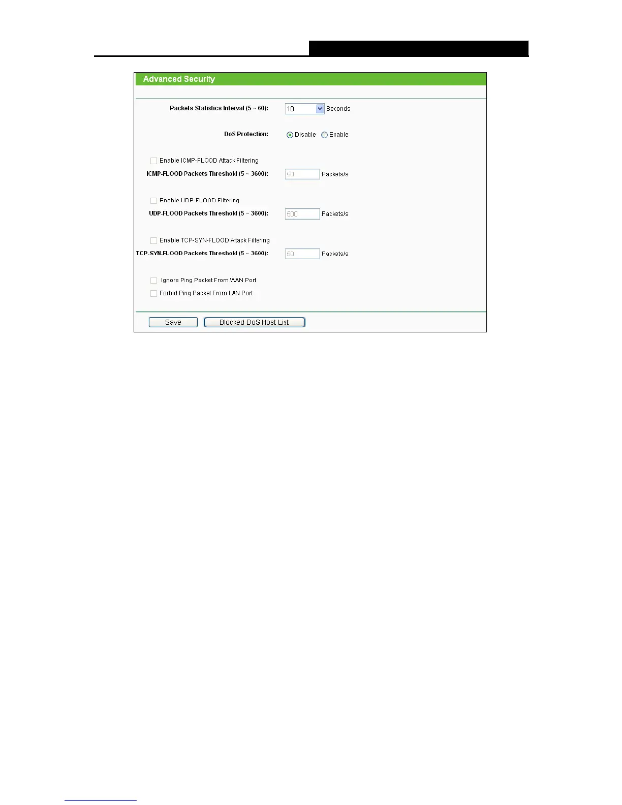 Packets Statistics Interval (5~60) - The default value is 10. Select a value between 5 and
