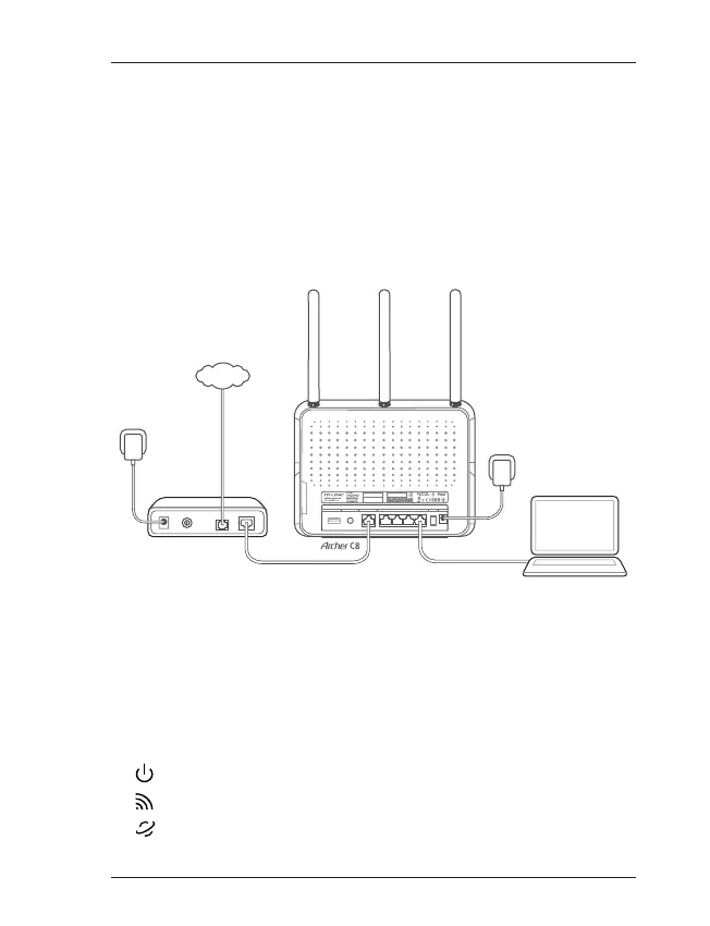 2. Pievienojiet modemu maršrutētāja Archer C8 interneta portam,