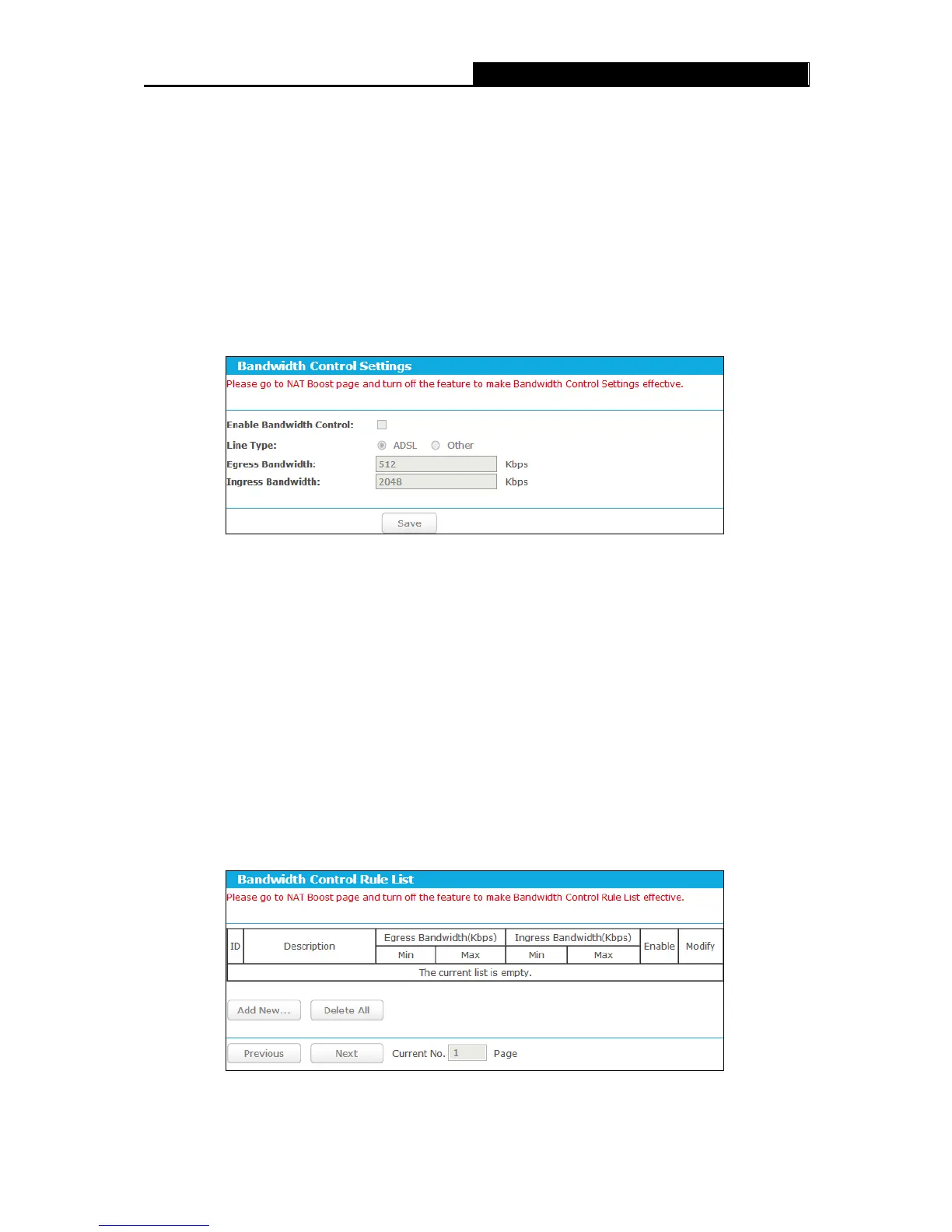 Bandwidth Control will become invalid if NAT Boost is enabled. If you want to enable Bandwidth