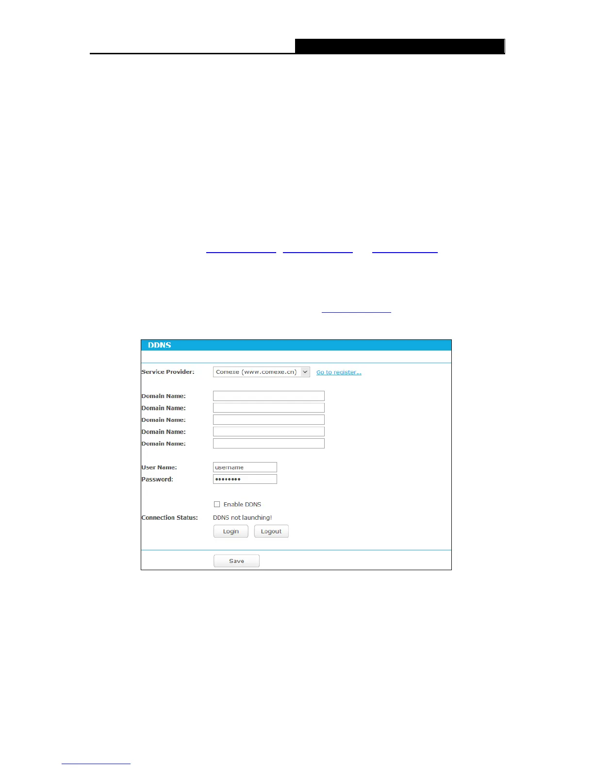 If the dynamic DNS Service Provider you select is www.comexe.cn, the page will appear as