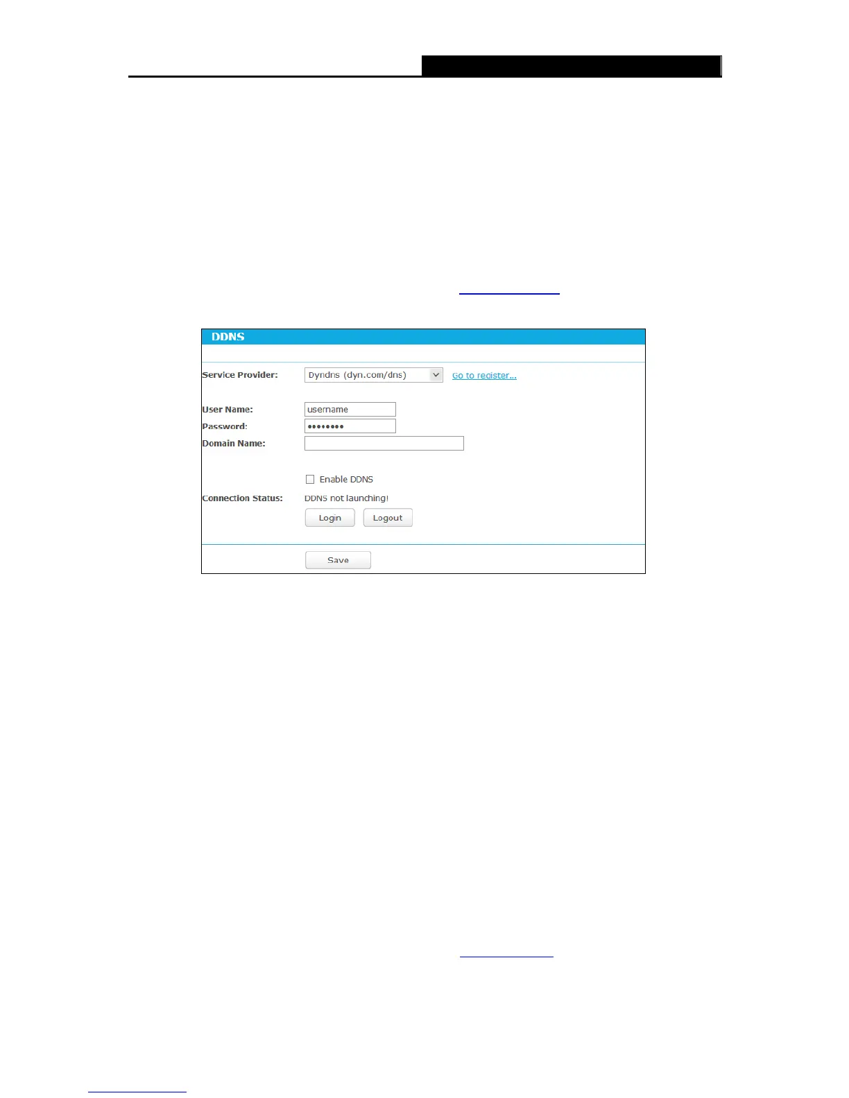 If the dynamic DNS Service Provider you select is www.dyndns.org, the page will appear as
