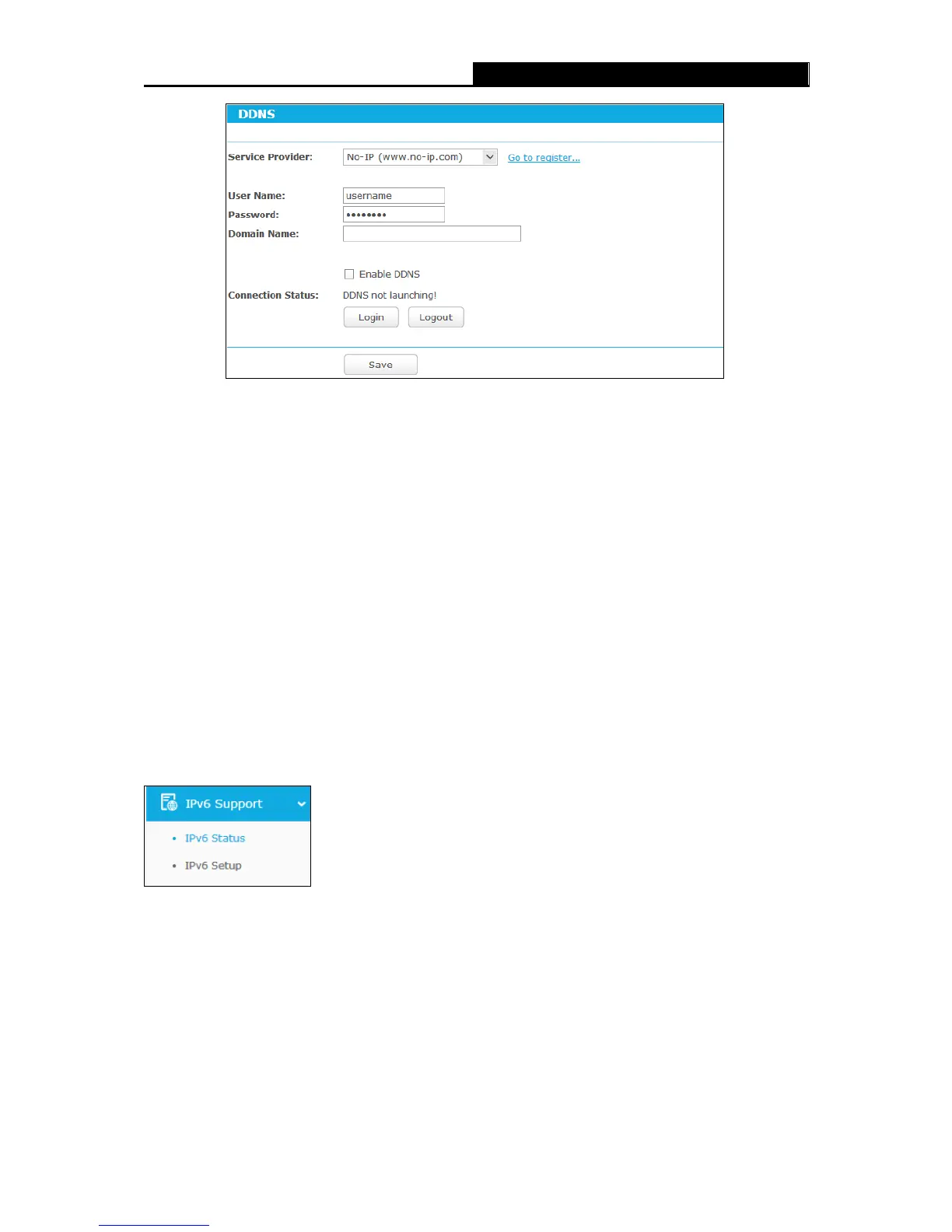 There are two submenus under the IPv6 Support menu (shown in Figure 5-95): IPv6 Status and