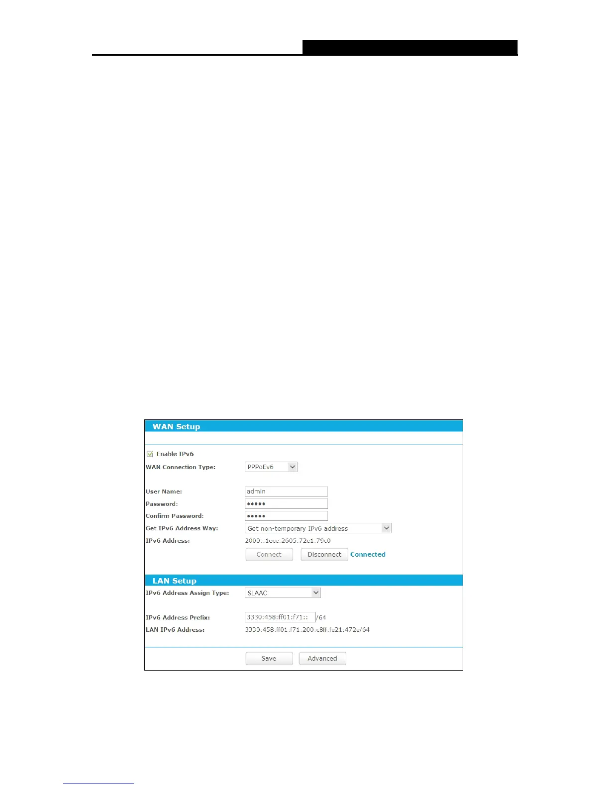 • IPv6 Address - Displays the LAN IPv6 Address.