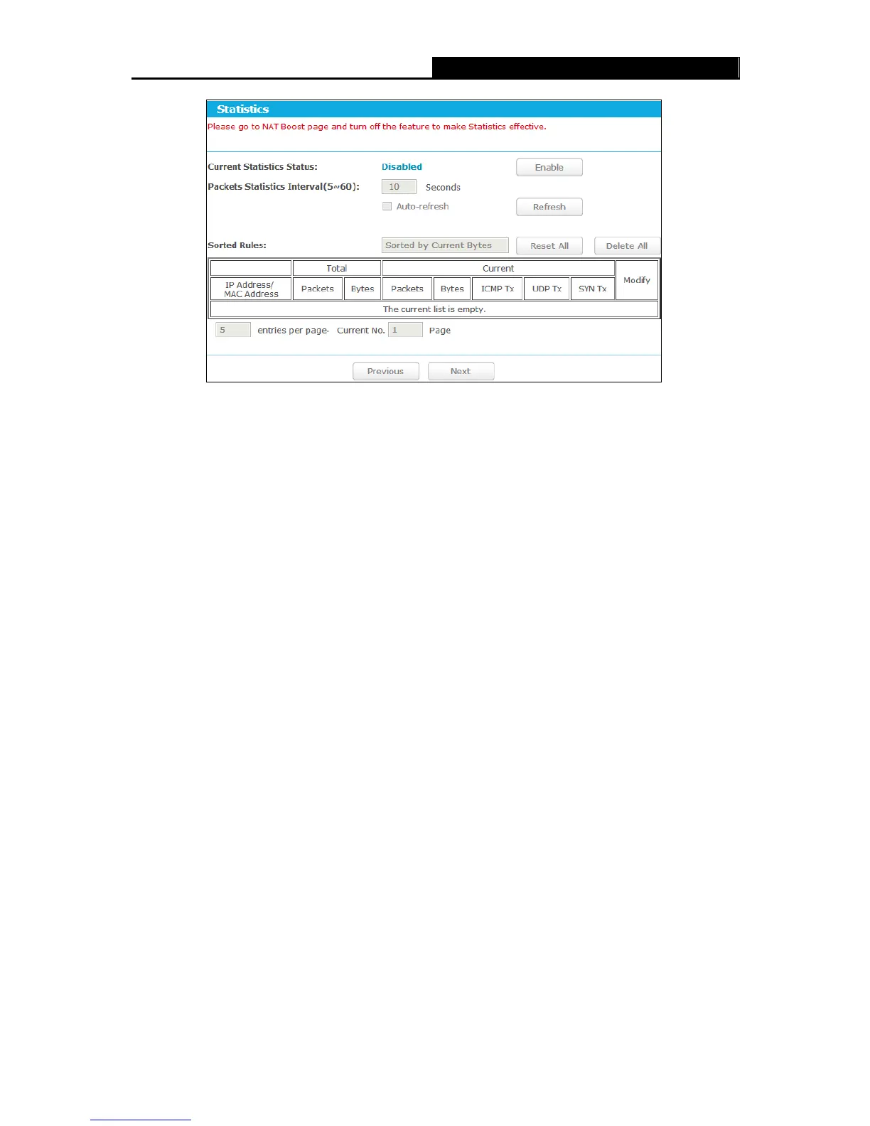 Current Statistics Status - Enable or Disable. The default value is disabled. To enable it,