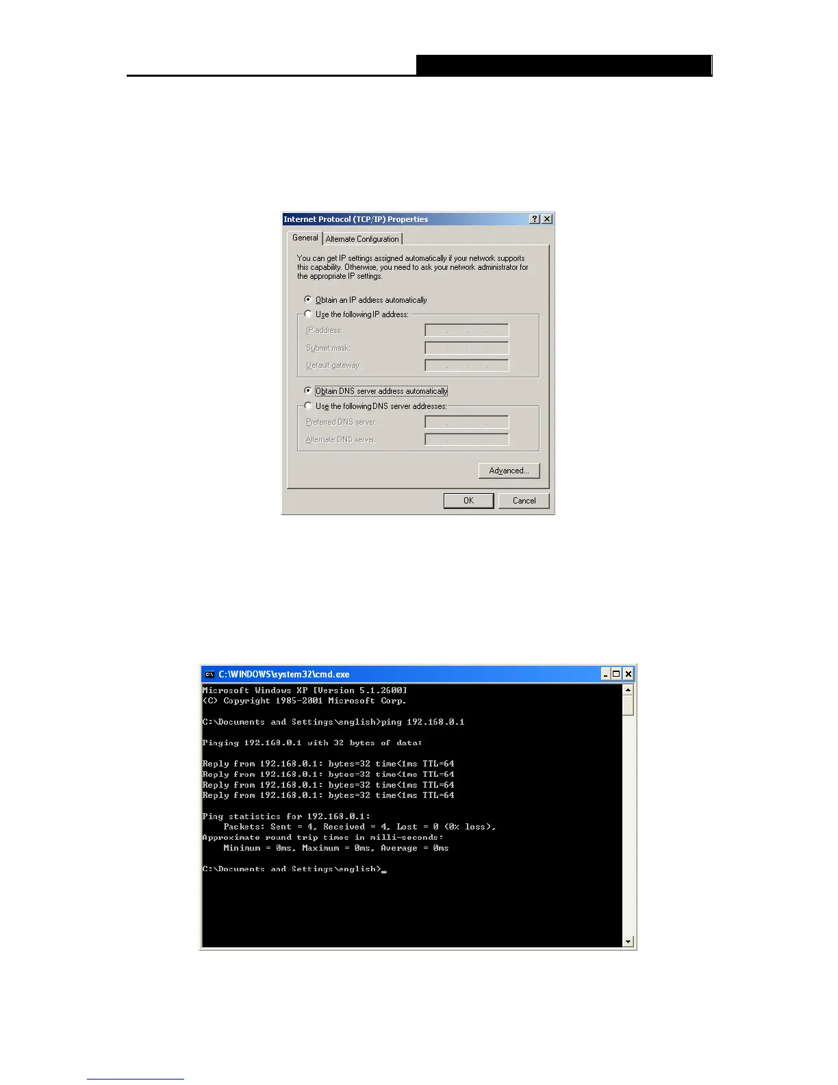 Open a command prompt, and type ping 192.168.0.1, and then press Enter.