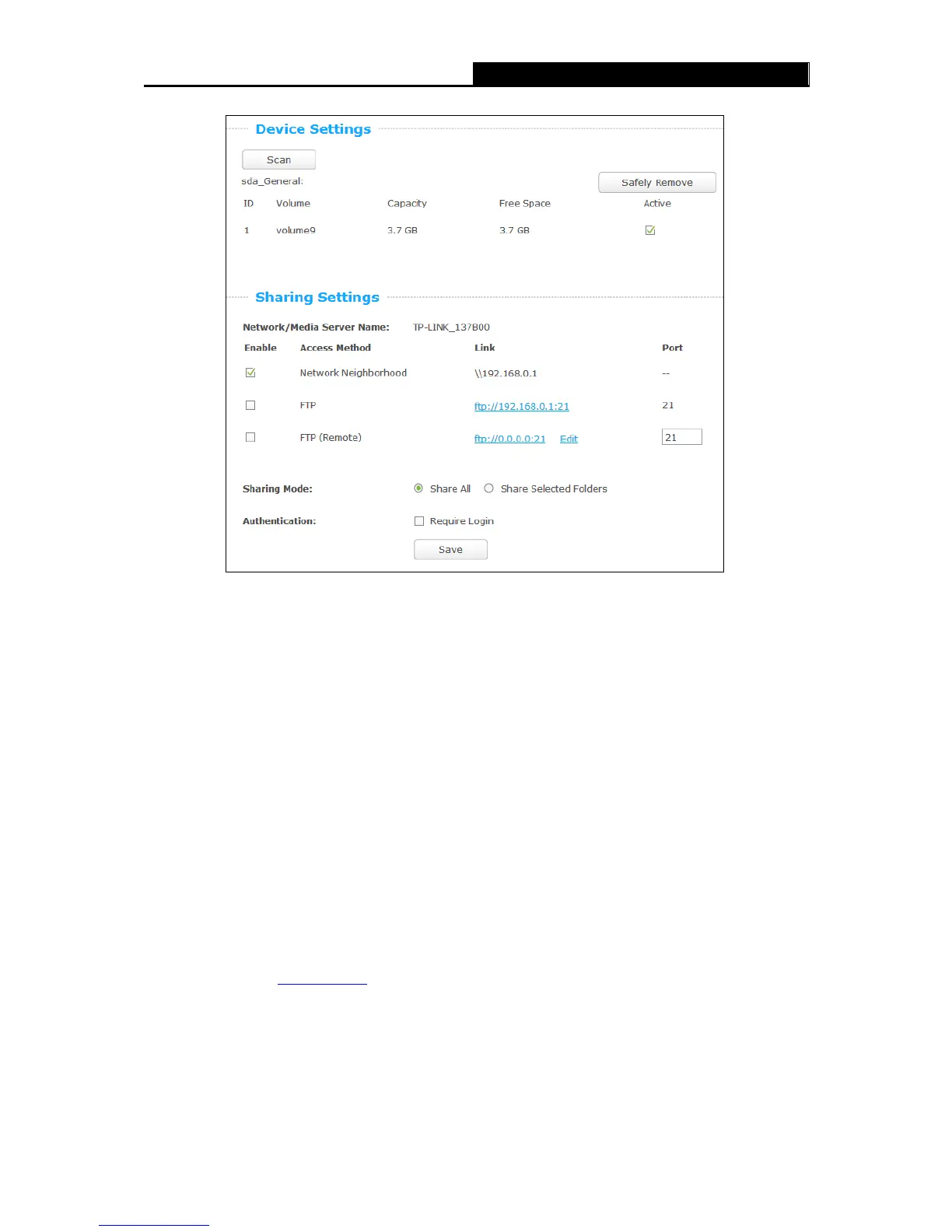 connected to the router. Click the Safely Remove button to remove the USB storage device