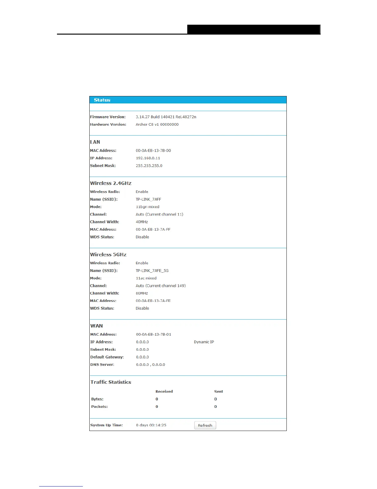 Status”, you can see the current status information about the router.