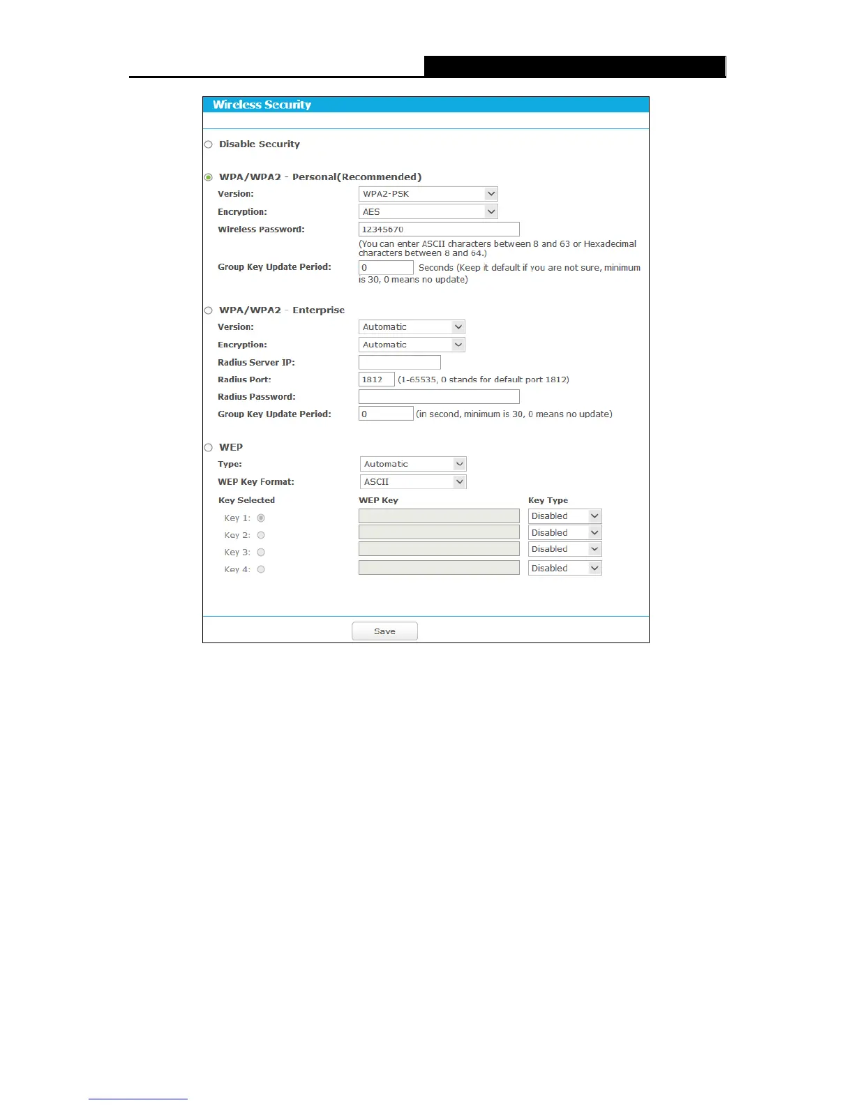 Disable Security - If you do not want to use wireless security, check this radio button. But it’s