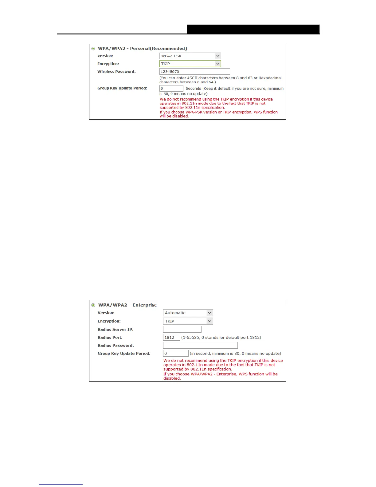 WPA/WPA2- Enterprise - It’s based on Radius Server. If you choose WPA/WPA2 -