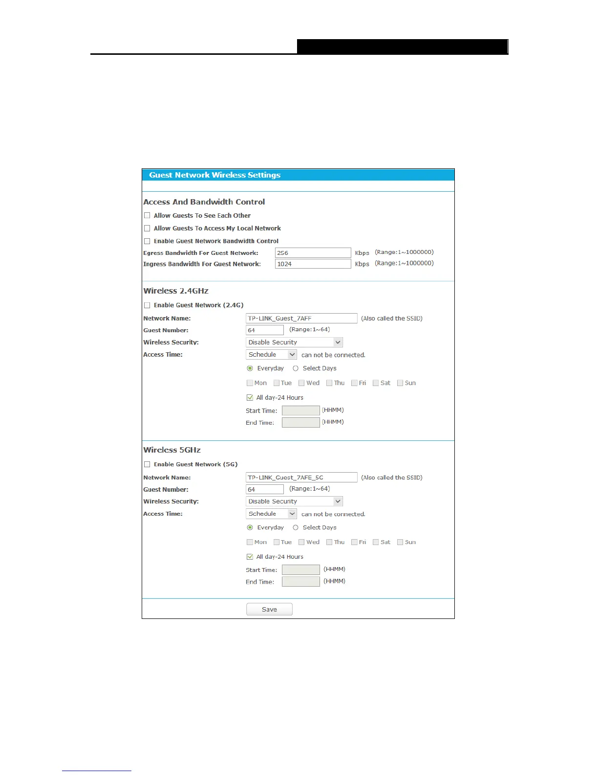 Figure 5-38 Guest Network Wireless Settings