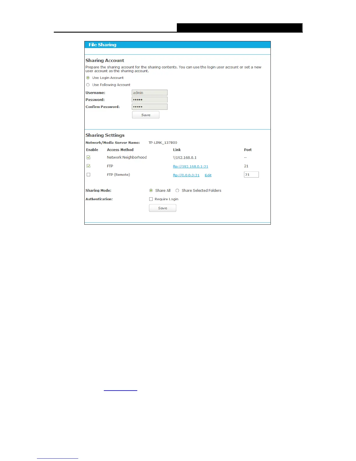 Use Login Account - Select this radio button, and the sharing account is the same with