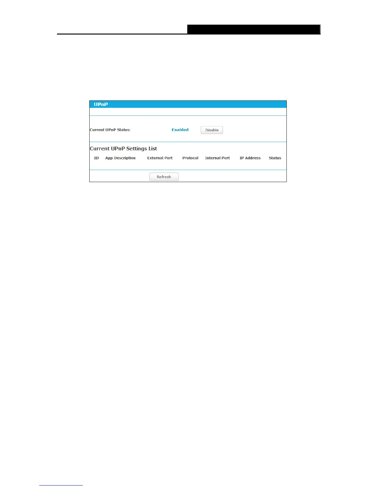 Current UPnP Status - UPnP can be enabled or disabled by clicking the Enable or Disable