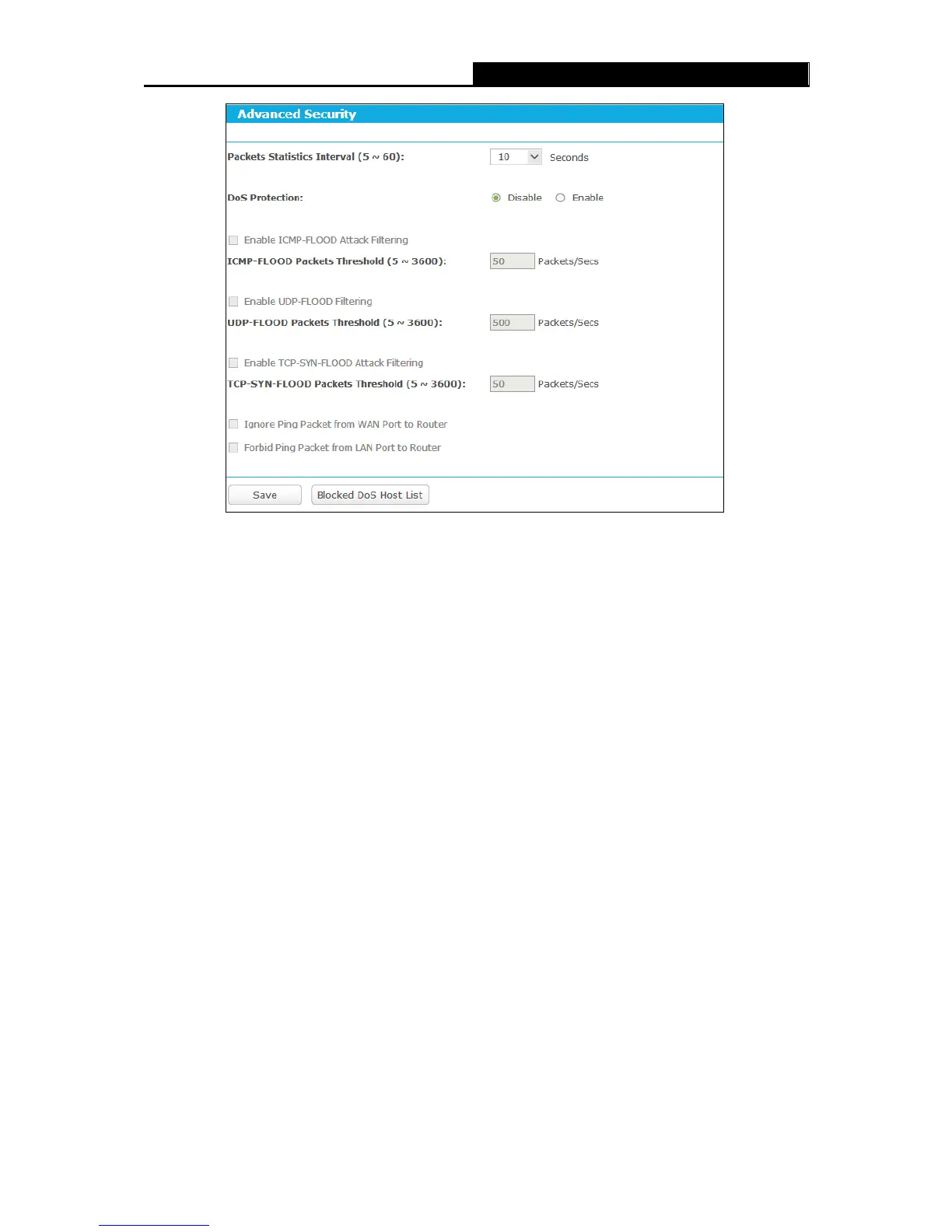 Packets Statistics Interval (5~60) - The default value is 10. Select a value between 5 and