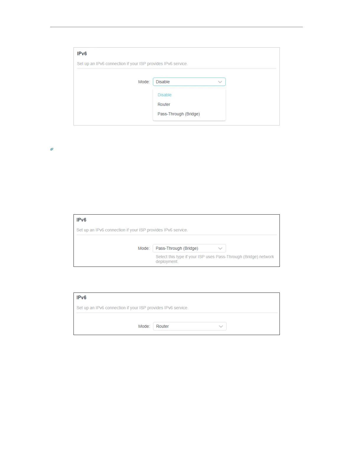 3. Select the mode provided by your ISP to enable IPv6 connection.