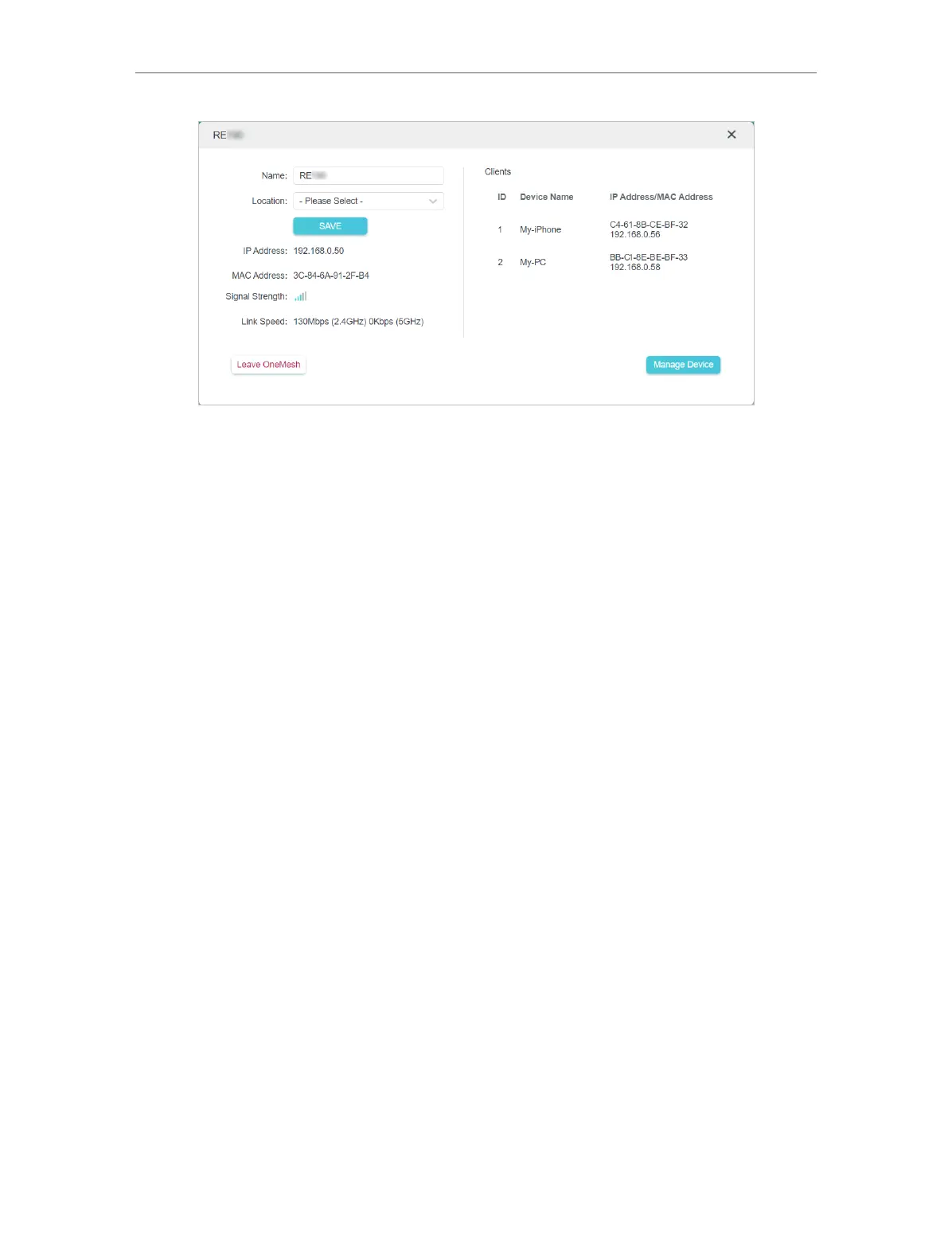 Click Leave OneMesh to delete this device from the OneMesh network.