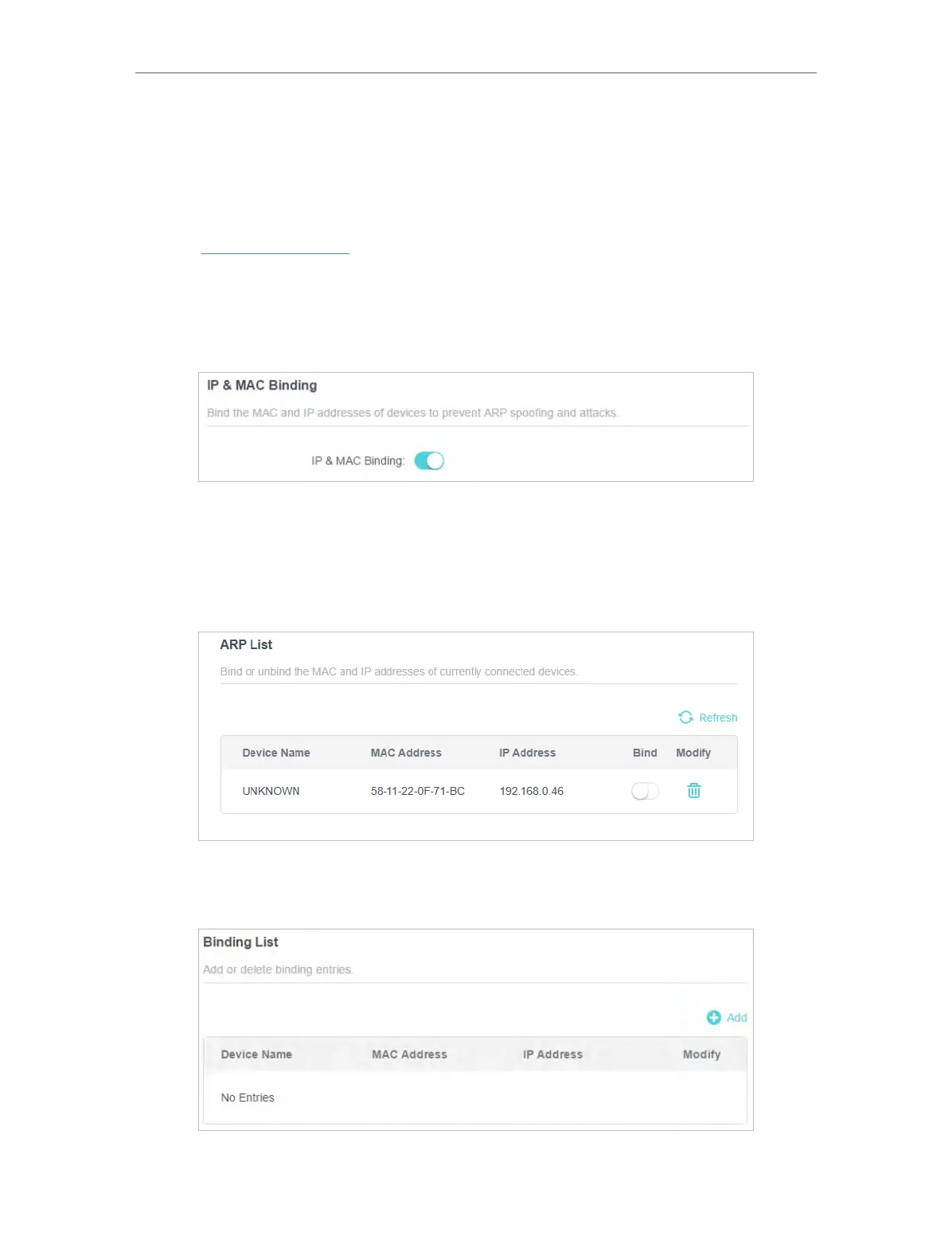 3. Enable IP & MAC Binding.