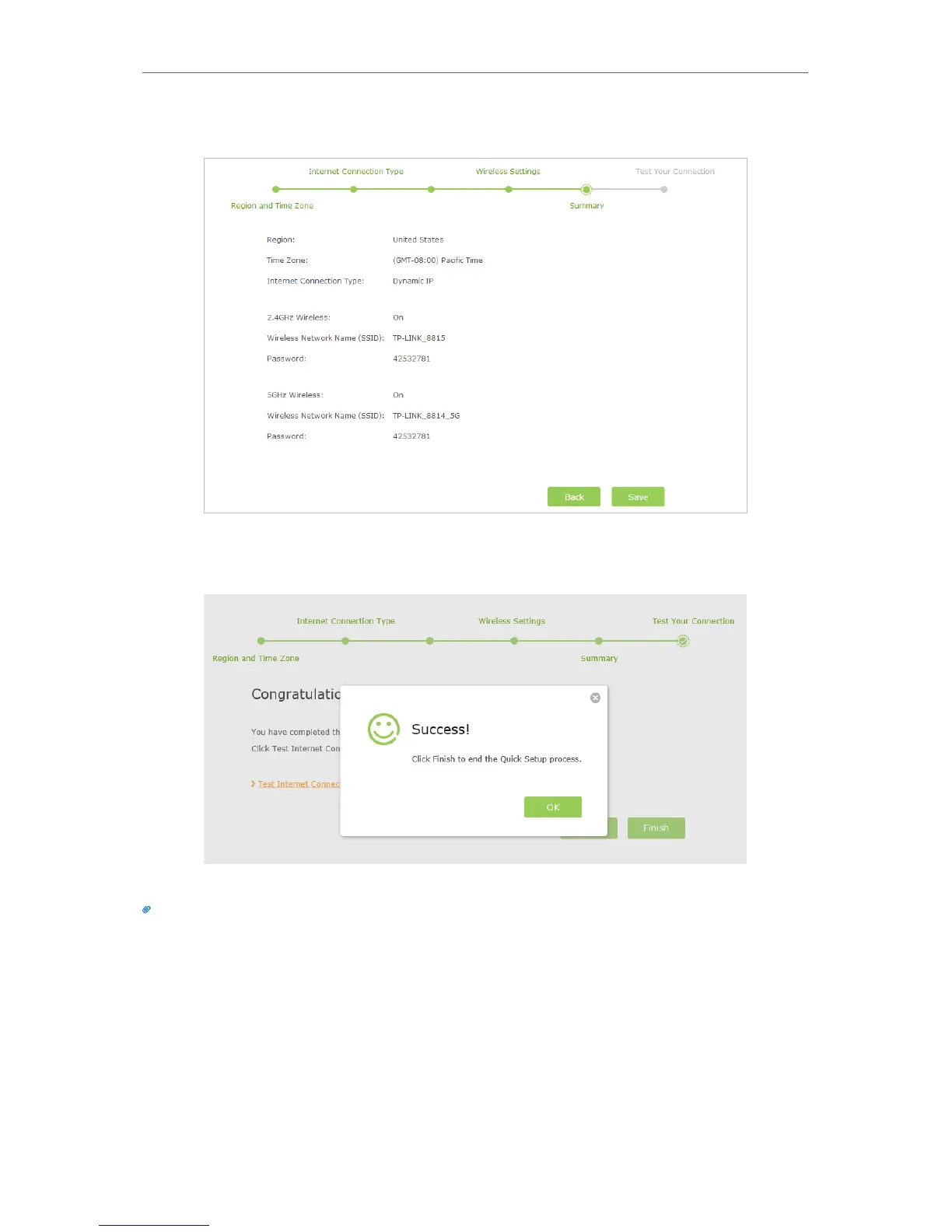 9. Click Test Internet Connection.If you successfully connect to the Internet, the screen