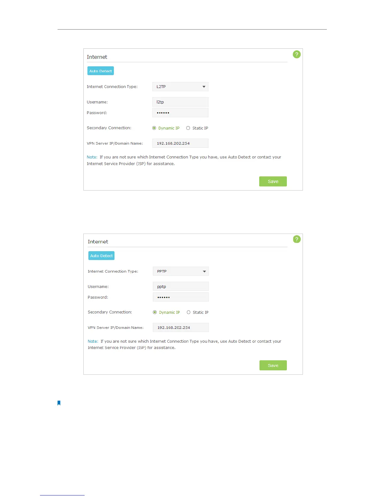 5 ) If you choose PPTP, enter the username, password and choose the Secondary
