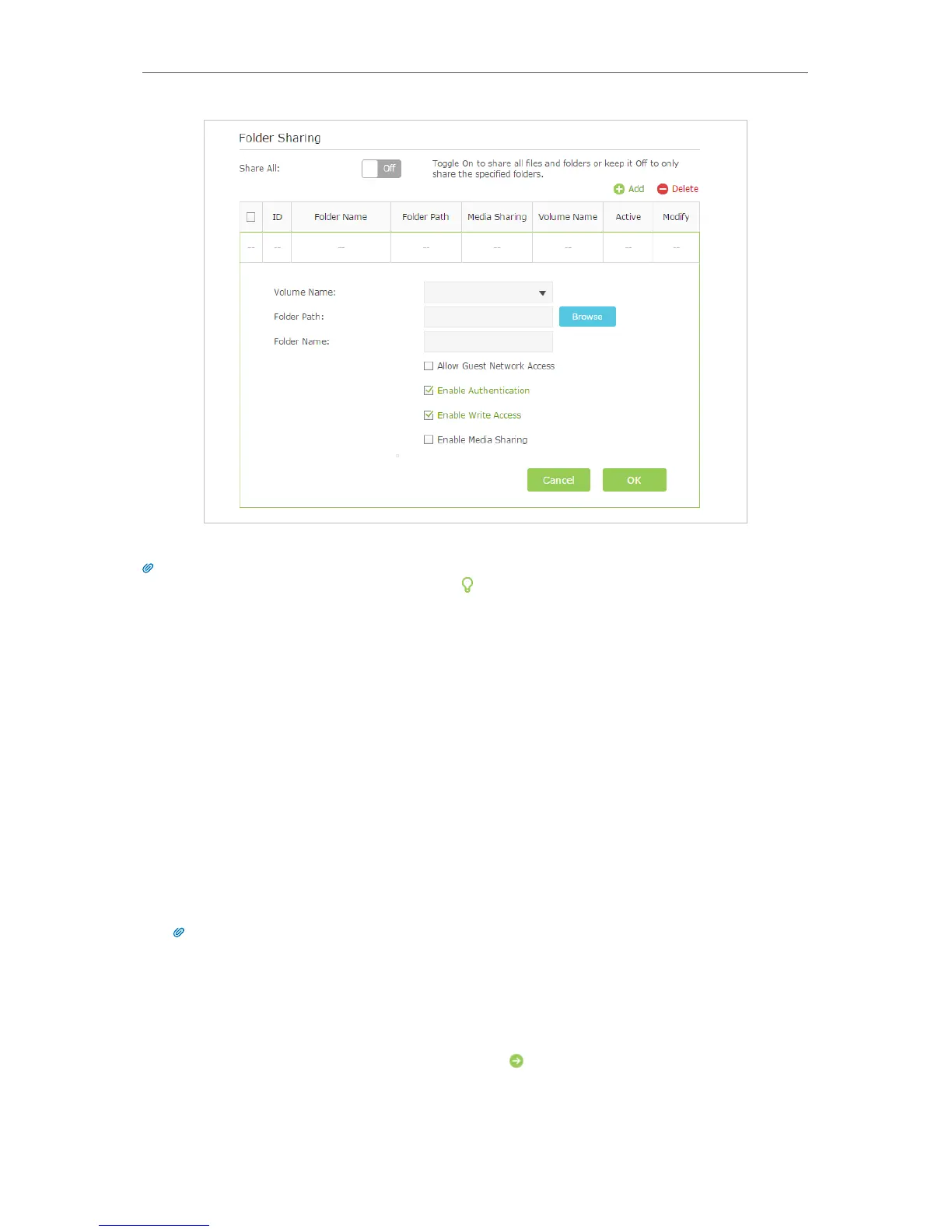 The router can share 32 volumes at most. You can click