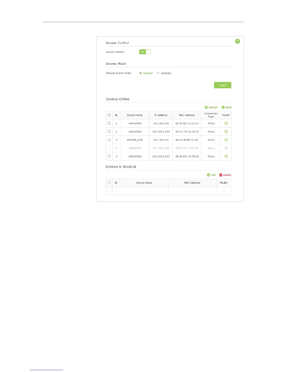 3 ) Click Block above the Devices Online table. The selected
