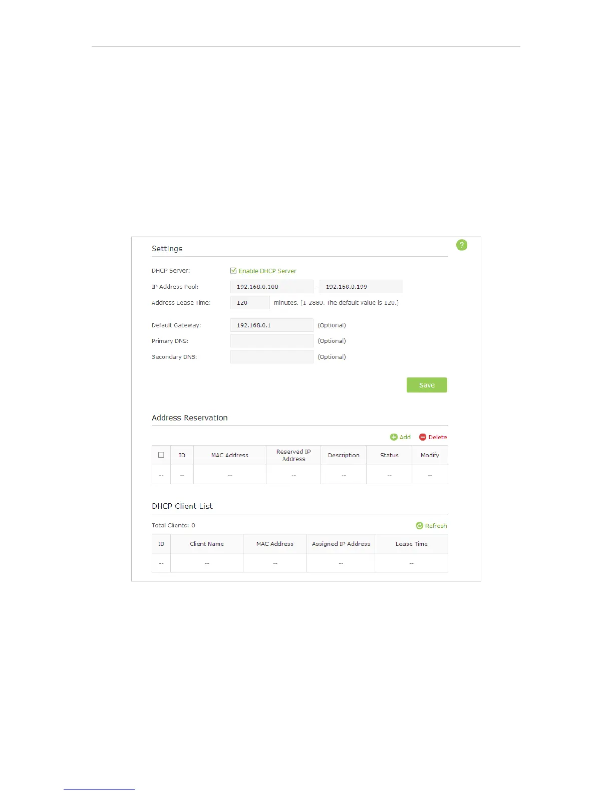 from the IP Address Pool. You can change the settings of DHCP Server if necessary, and