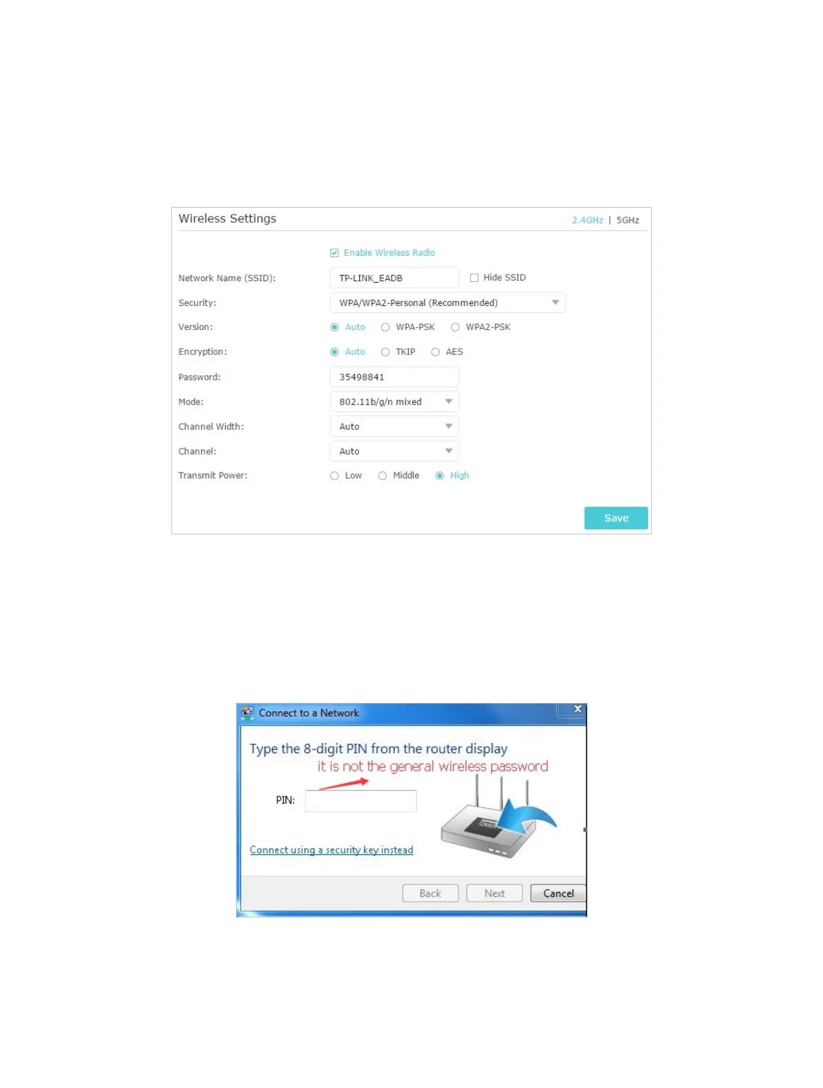the wireless network for the first time. This PIN number is different from the