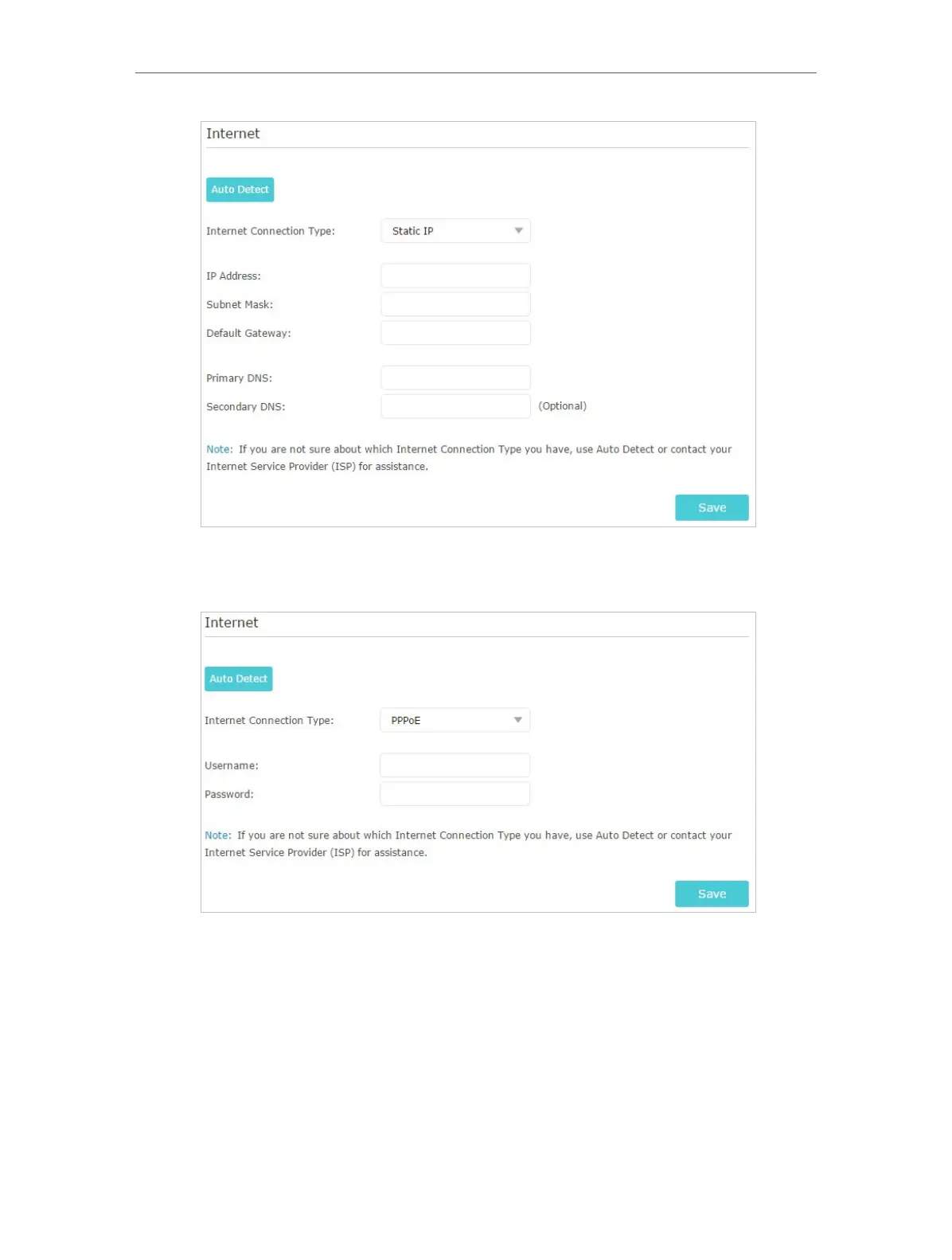 3 ) If you choose PPPoE, enter the username and password provided by your ISP.