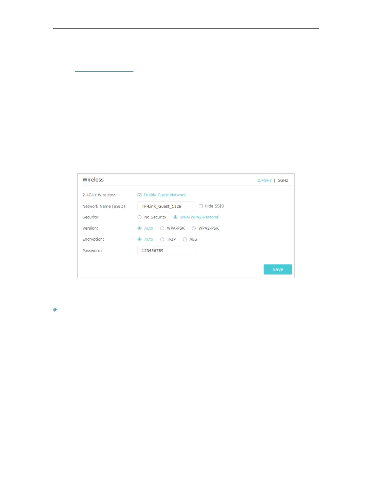 4. Click Save. Now your guests can access your guest network using the SSID and