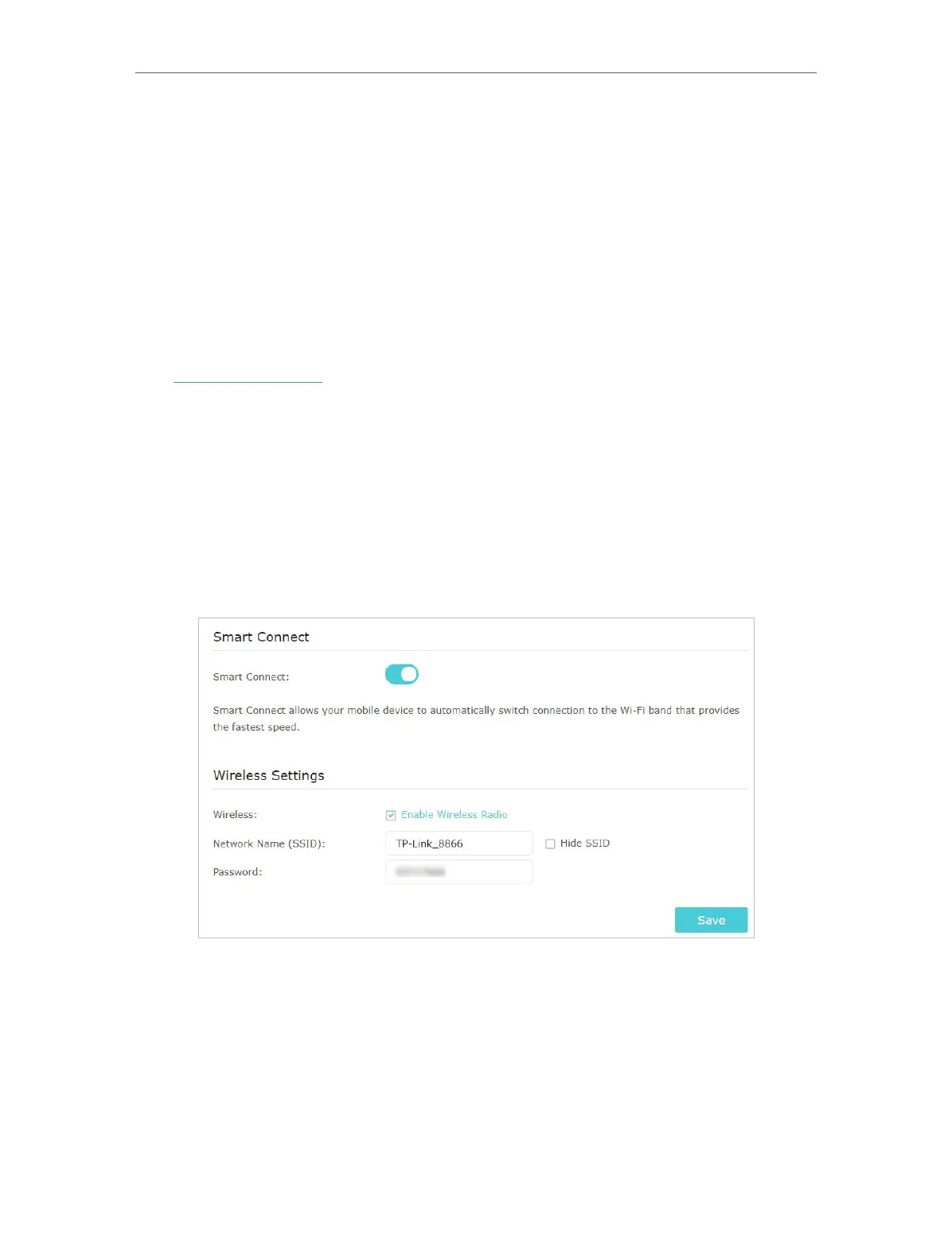 3. Keep the default or set a new SSID and password, and click Save. This SSID and