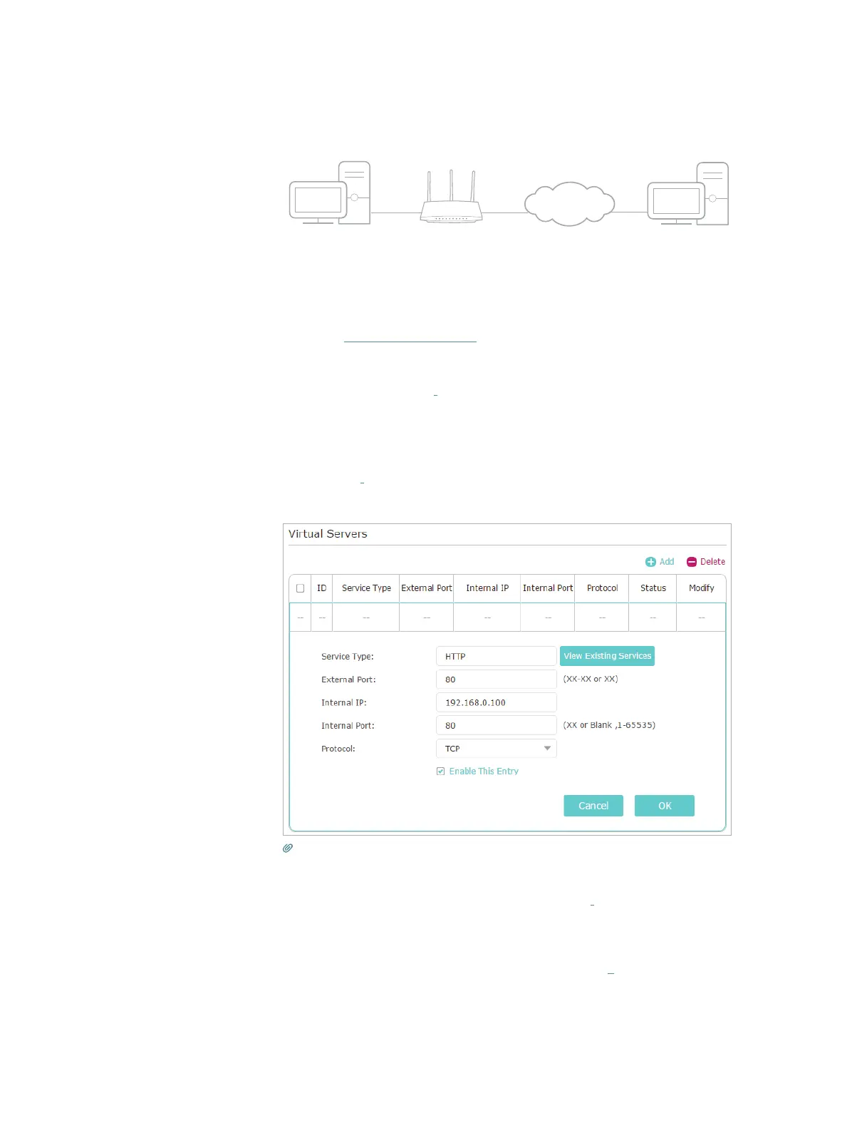services in a router. Please note that the External Port should not be