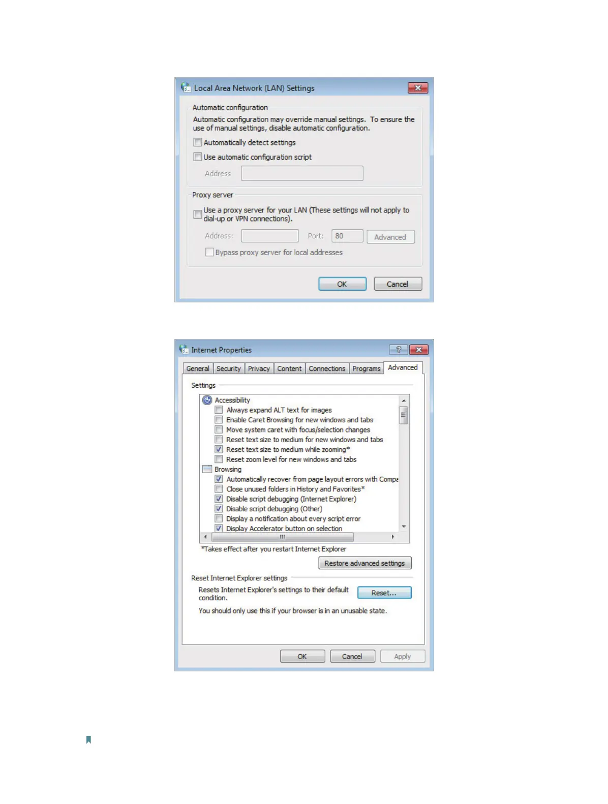5 ) Go to Advanced > Restore advanced settings, click OK to save the settings.