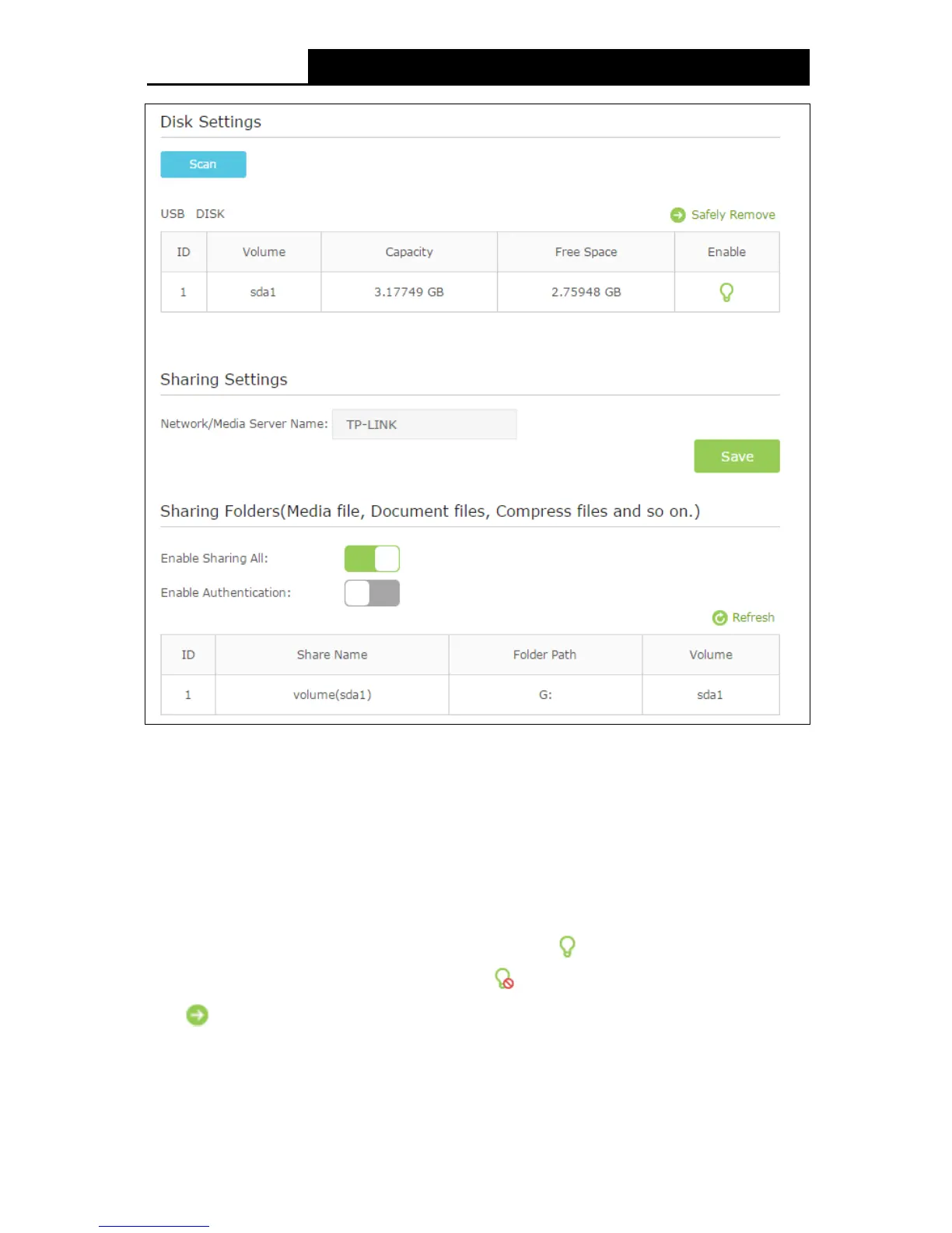 Enable - When the volume is shared, you can click the icon to stop sharing the volume;