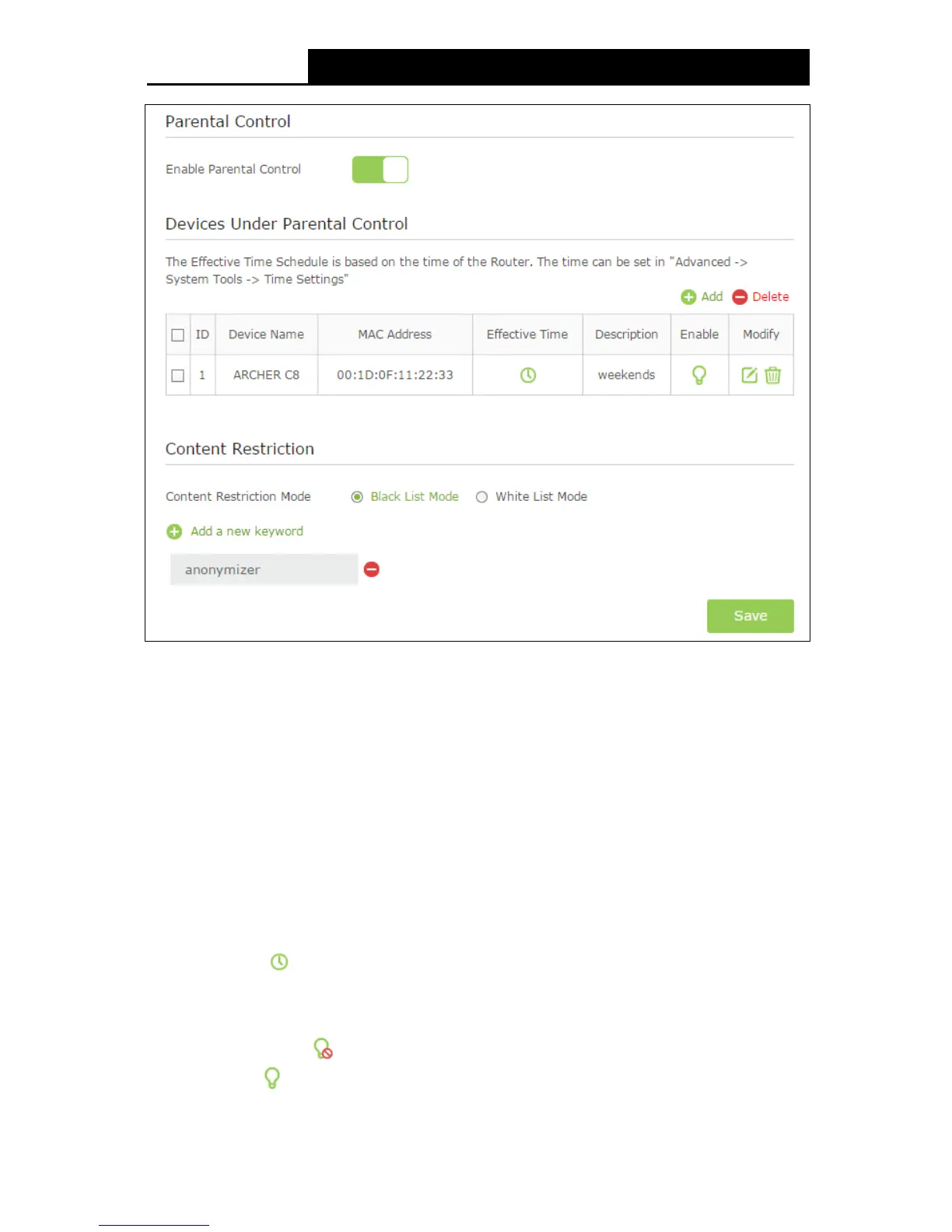 Enable Parental Control - The switch for the parental control. If turn on the switch, the field