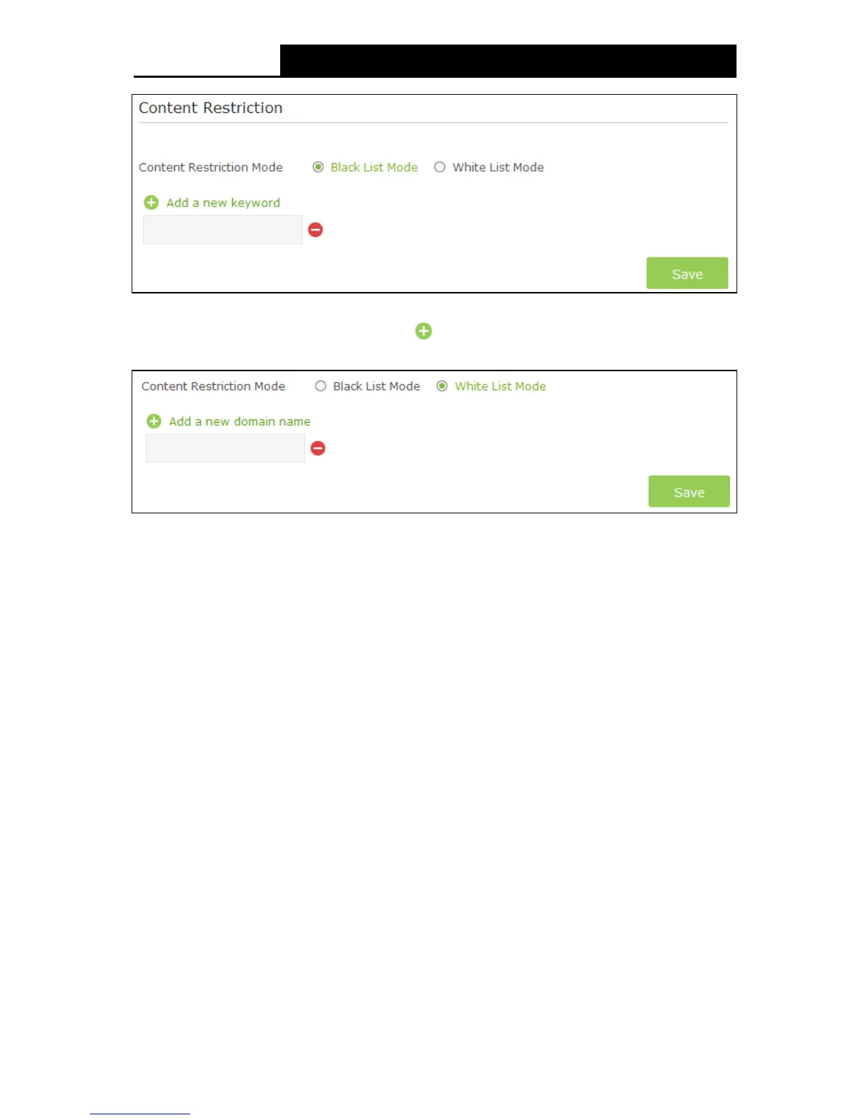 White List M ode - Only the web entered within the White List will be allowed. Check the box