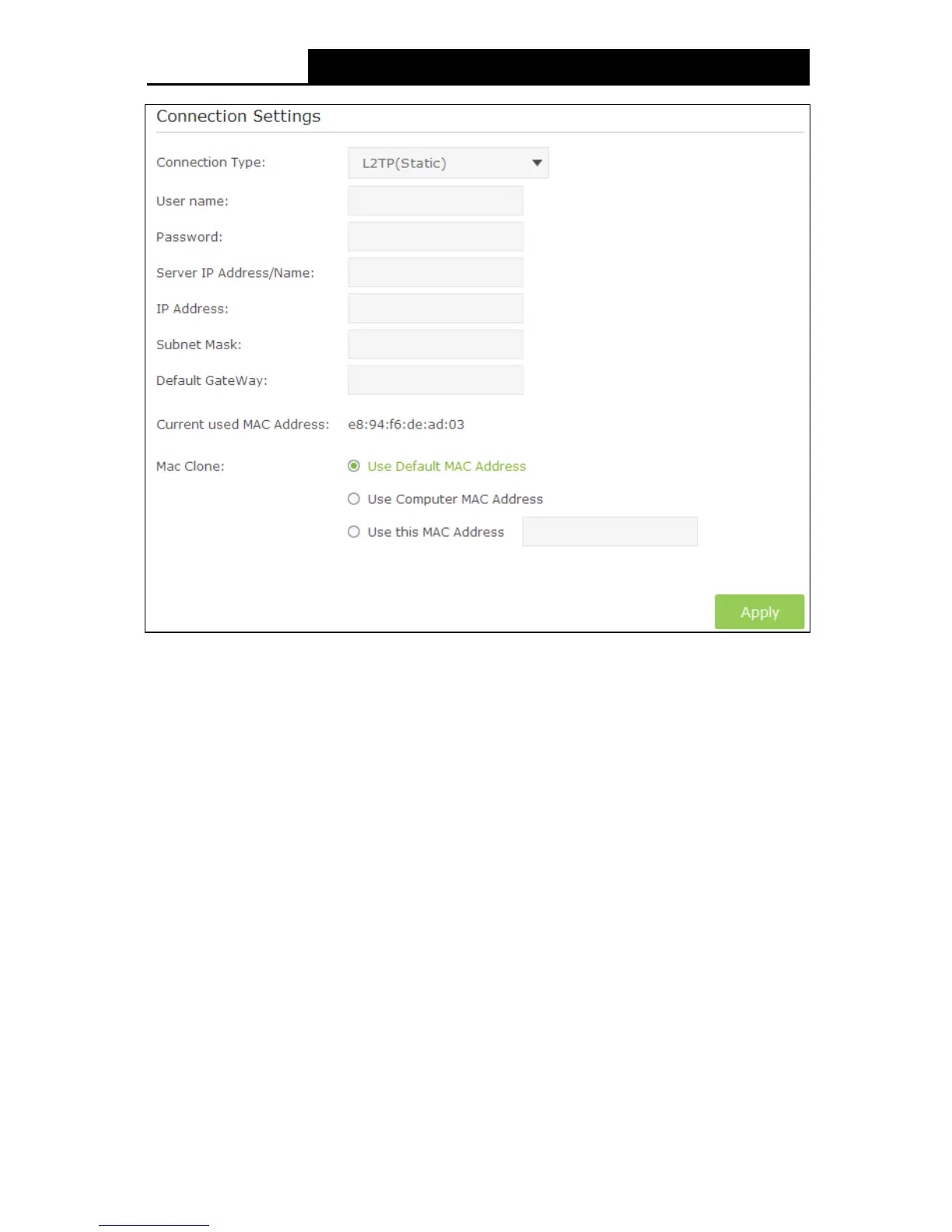 Interface depend on your needs. If you select Use this M AC Addre ss, you can enter the