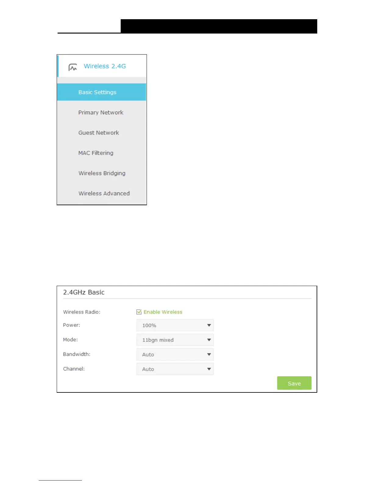Wire less 2.4G”, you will see six submenus under the Wireless menu: