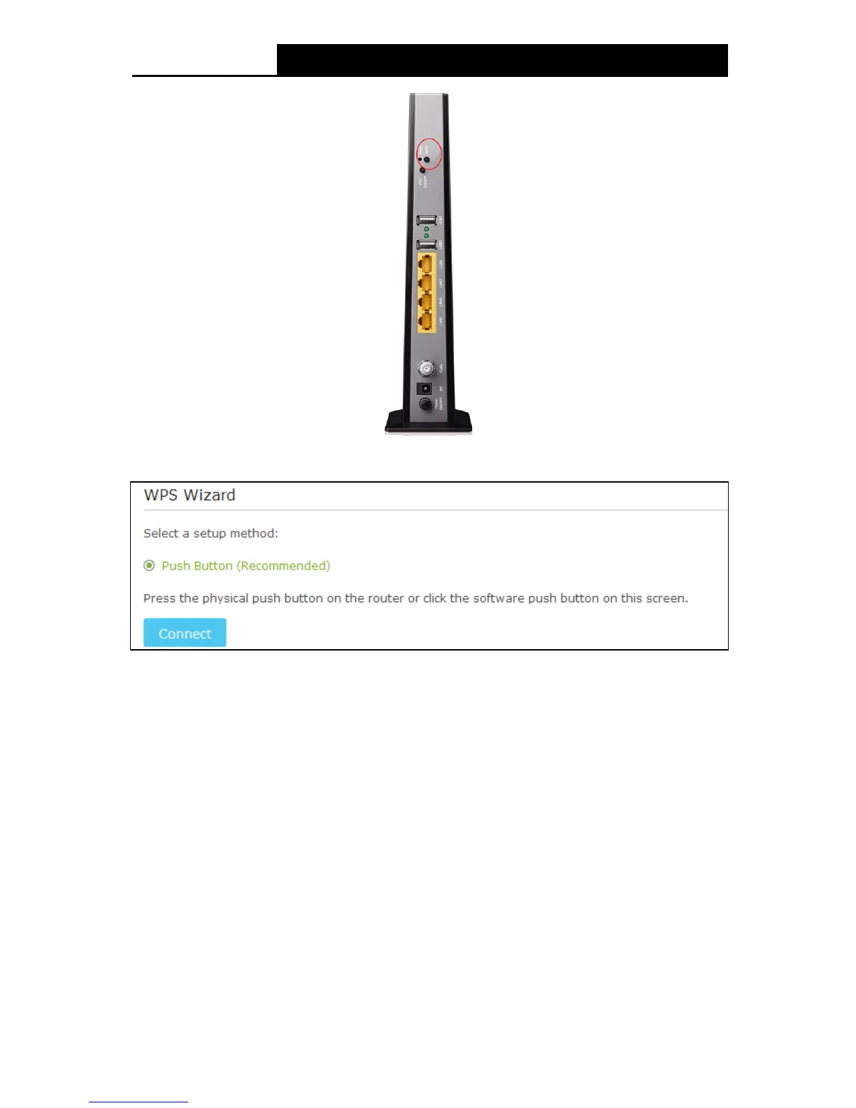 Step 8: When the WPS LED is on, the client device has successfully connected to the modem