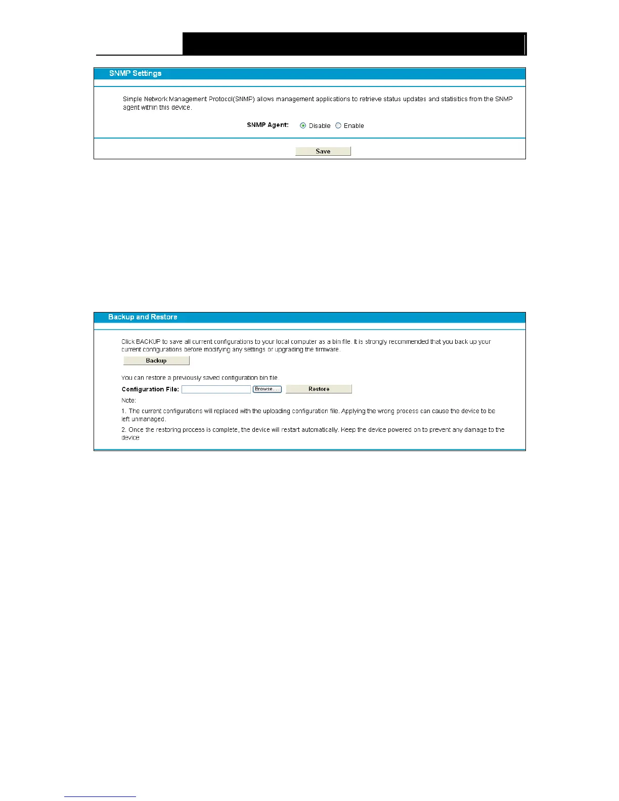 Click the Backup button to save all configuration settings as a backup file in your local computer.
