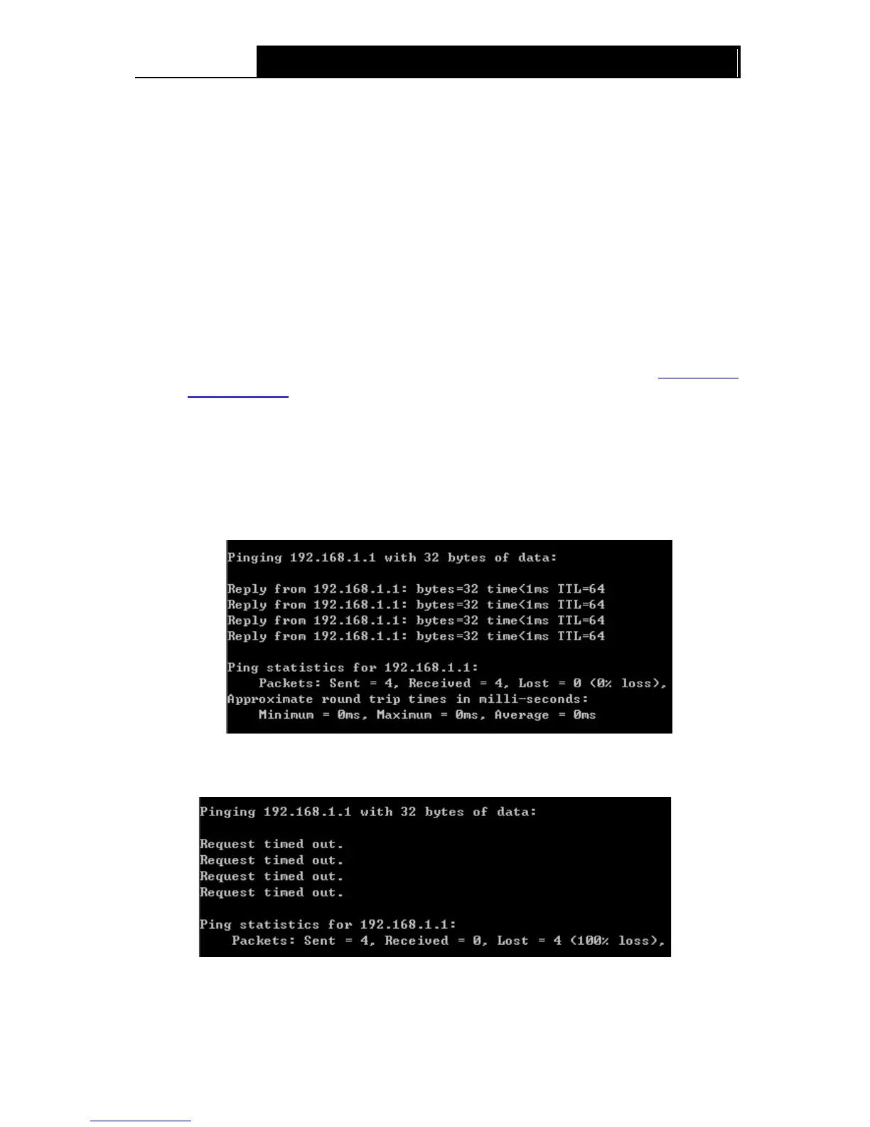and press Enter. Type ping 192.168.1.1 on the next screen, and then press Enter.