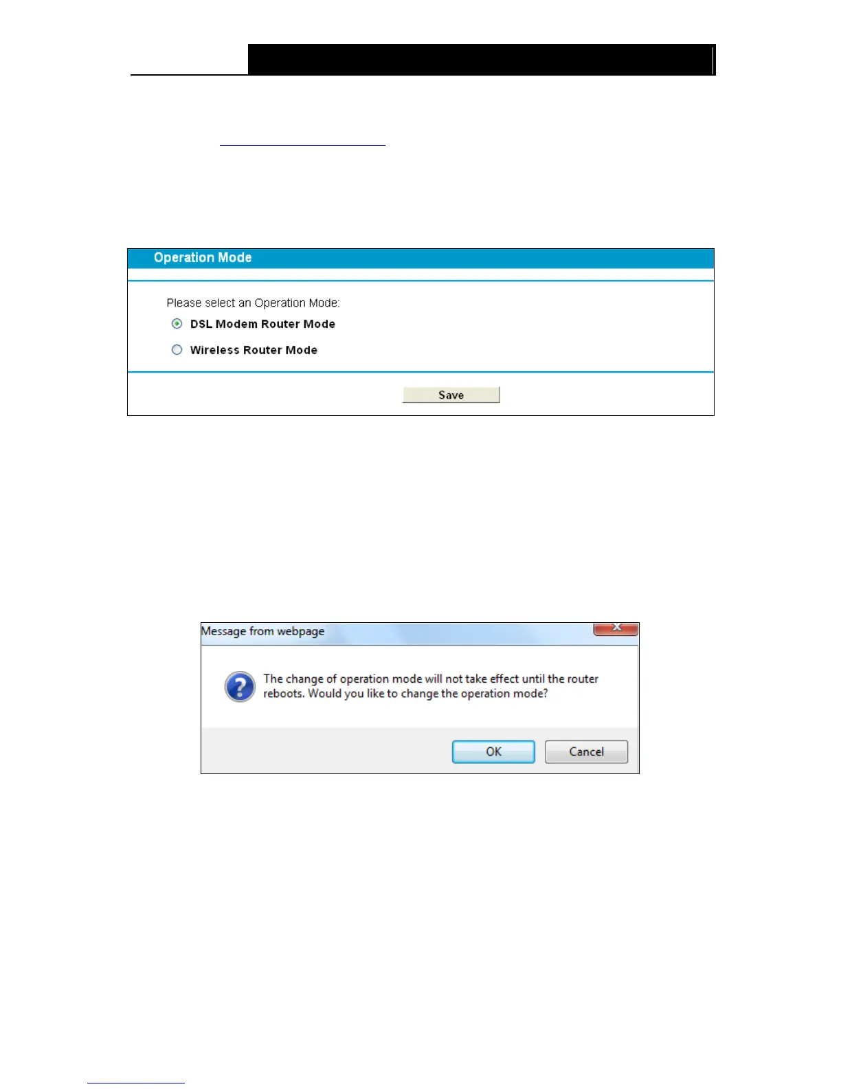 After you click the Save button, the Note Dialog will appear. Click OK and then the modem router