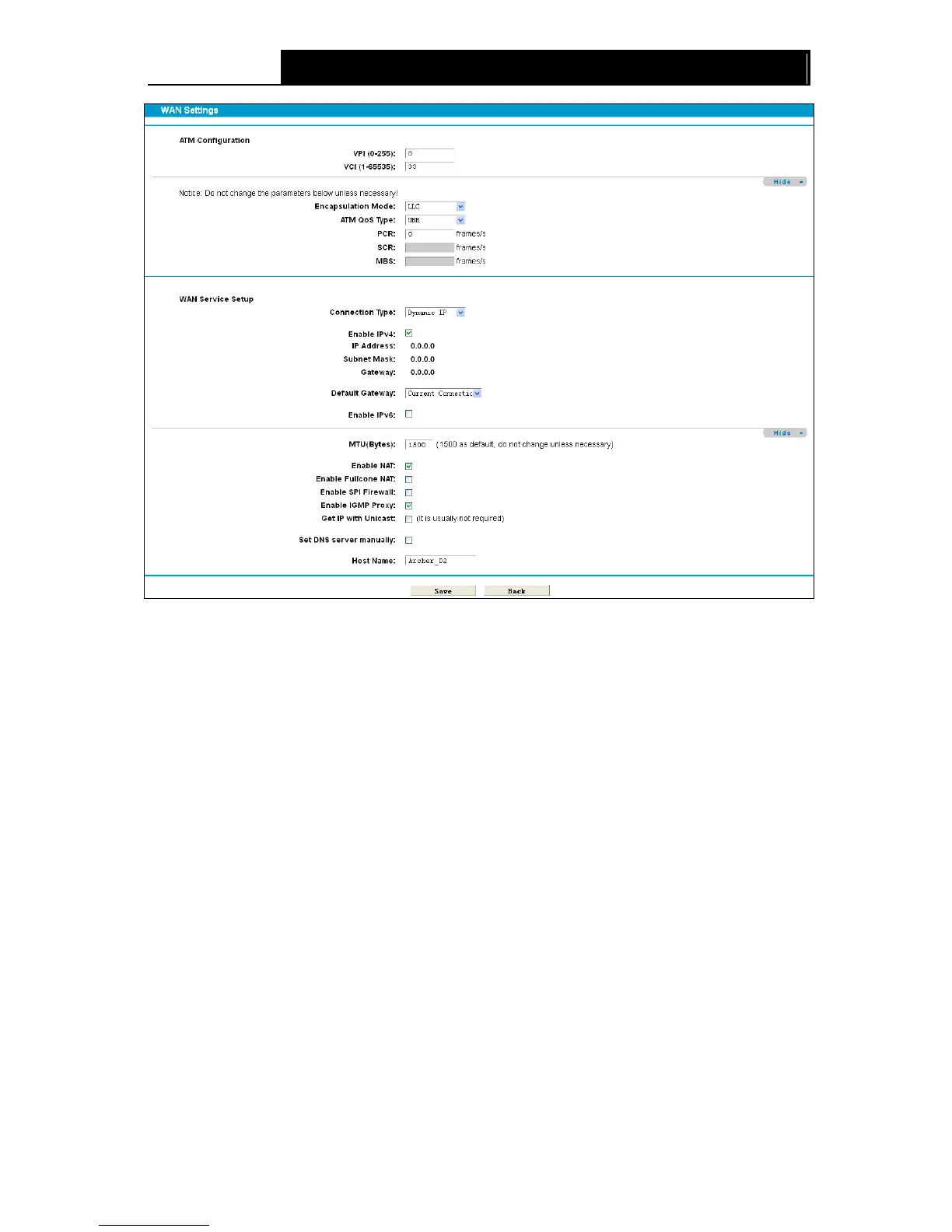 Click Advance, advanced selections for WAN Service Setup can be shown.