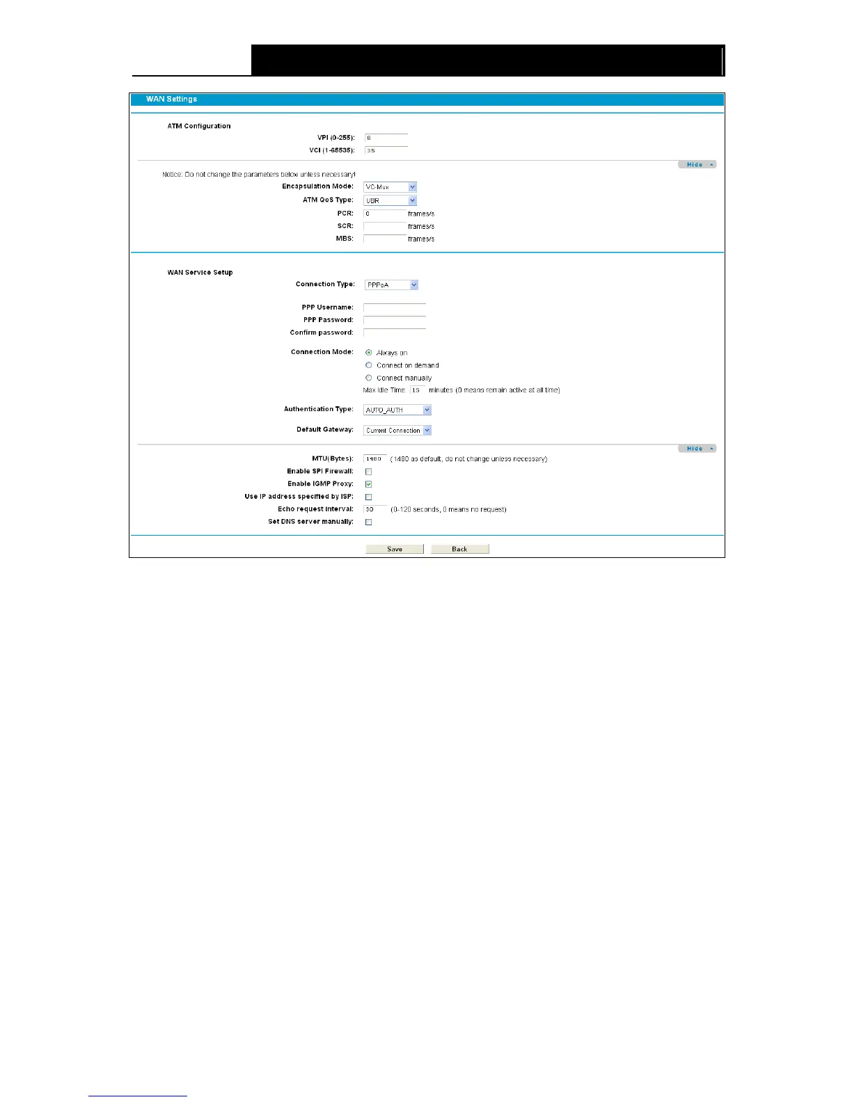 If your ISP provides an IPoA connection, select IPoA option for the Connection Type on the