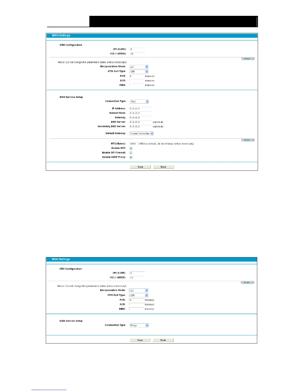 If you select this type of connection, the modem router can be configured to act as a bridging