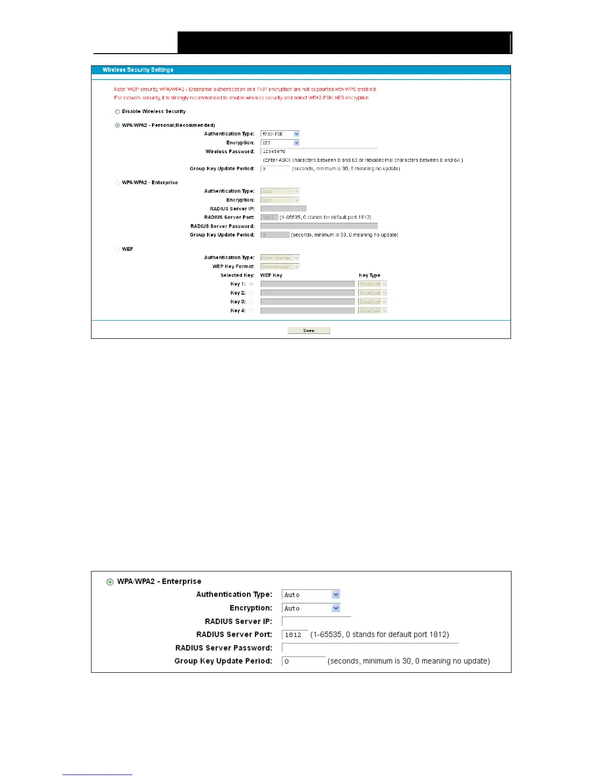Disable Wireless Security: If you do not want to use wireless security, check this radio
