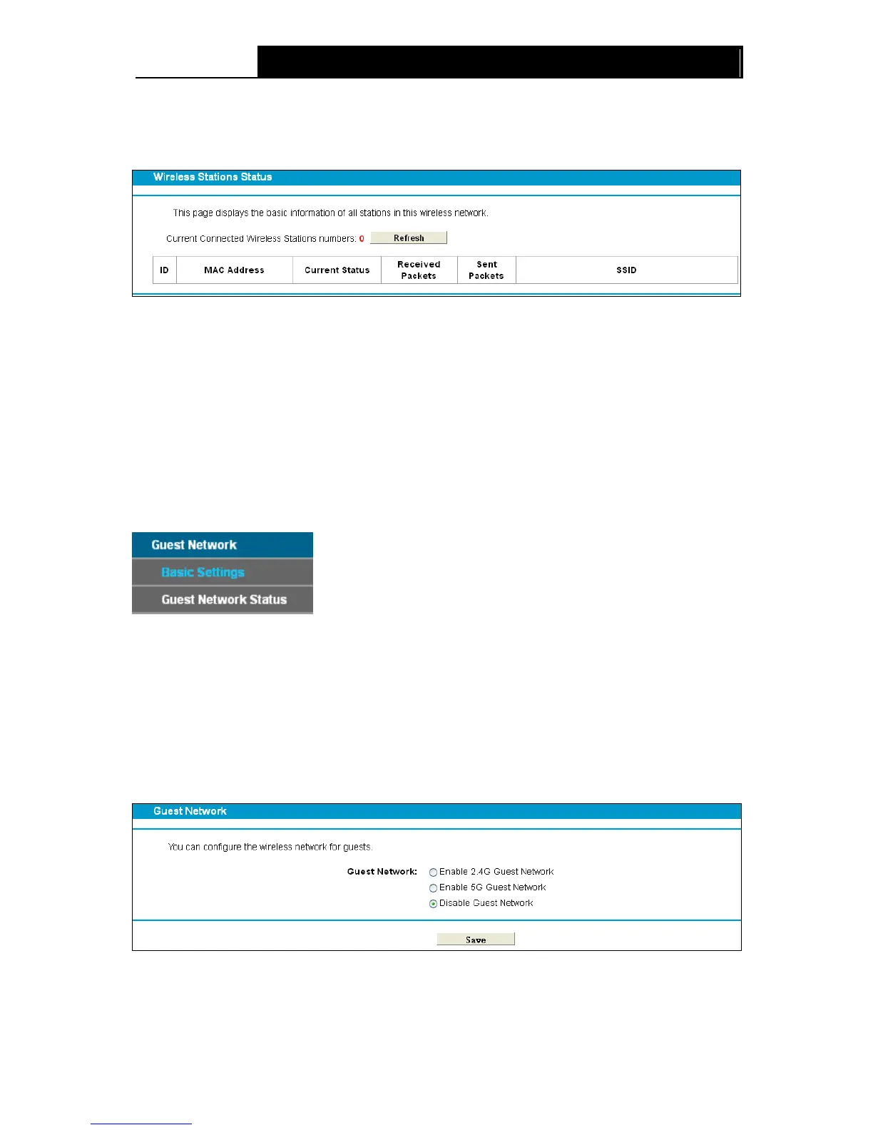 There are two submenus under the Guest Network menu: Basic Settings and Guest Network